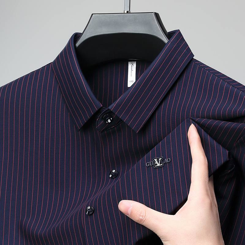 利郎高端短袖衬衫男士修身韩版条纹时尚潮流衬衣男中青年休闲上衣