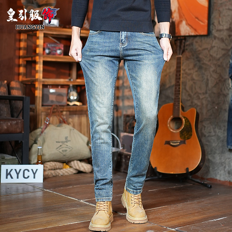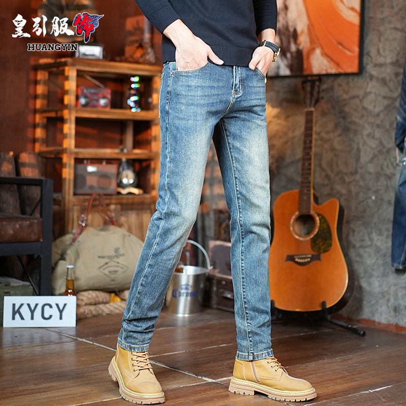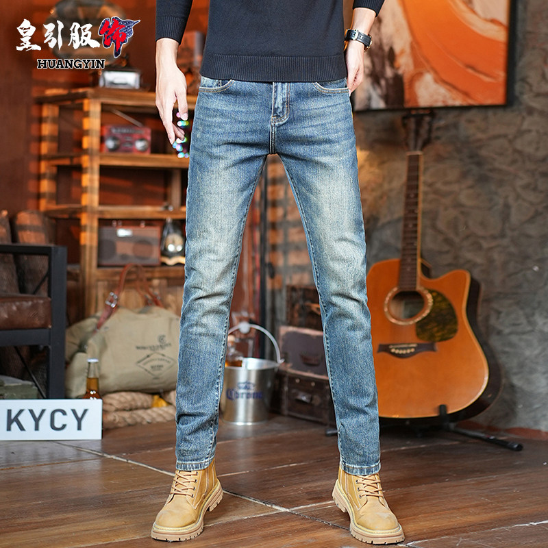 香港高端九分牛仔裤男秋季新款深蓝色潮流修身小脚弹力休闲长裤子