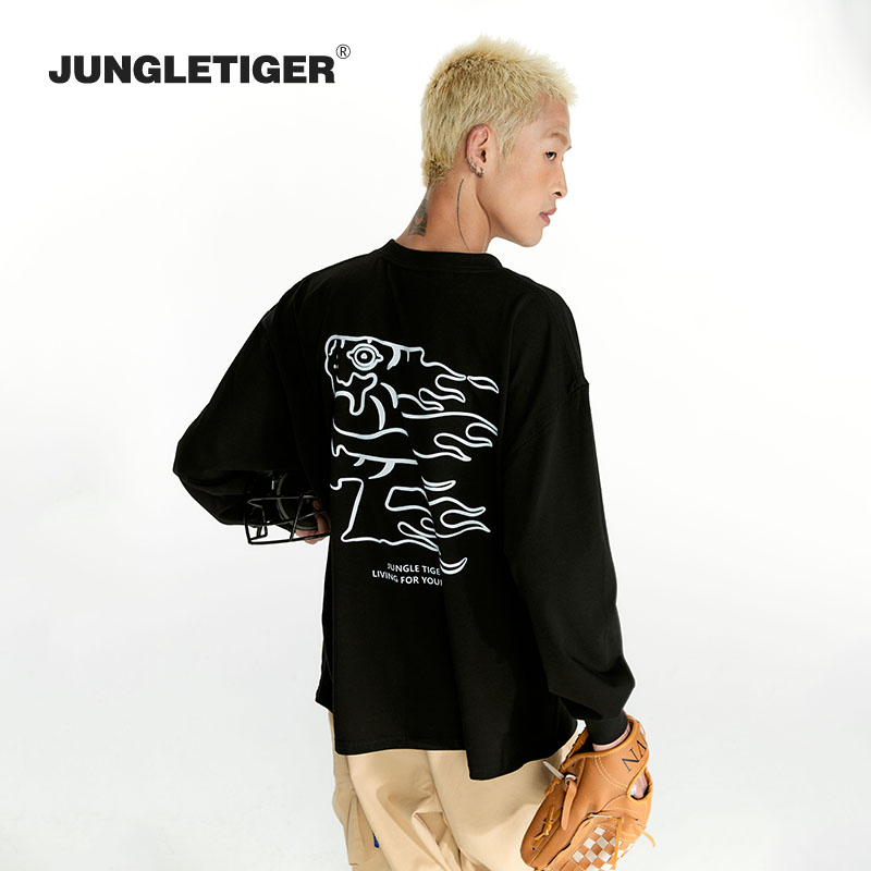 丛林老虎原创JT字母虎头长袖t恤2025春秋美式潮牌纯棉打底衫男女