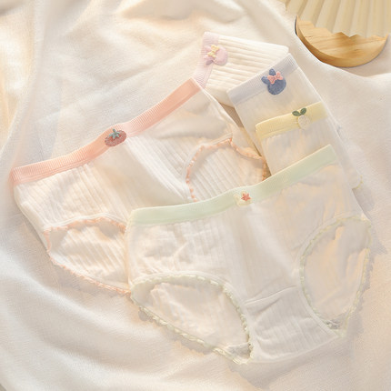 白底浅色系可爱小兔子南瓜少女内裤中腰撞色边棉裆透气学生三角裤