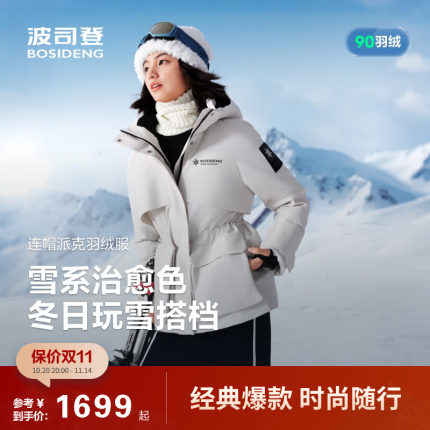 波司登2025新款羽绒服女冰雪运动时尚保暖连帽户外收腰显瘦加厚