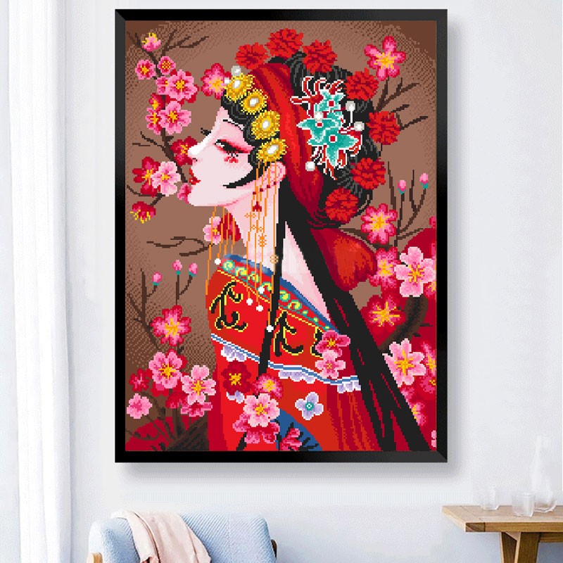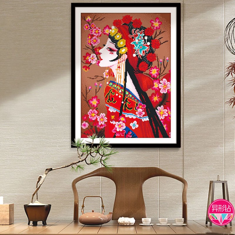 异形钻石十字绣2021客厅新款水晶钻京剧花旦卧室古风美女砖石画