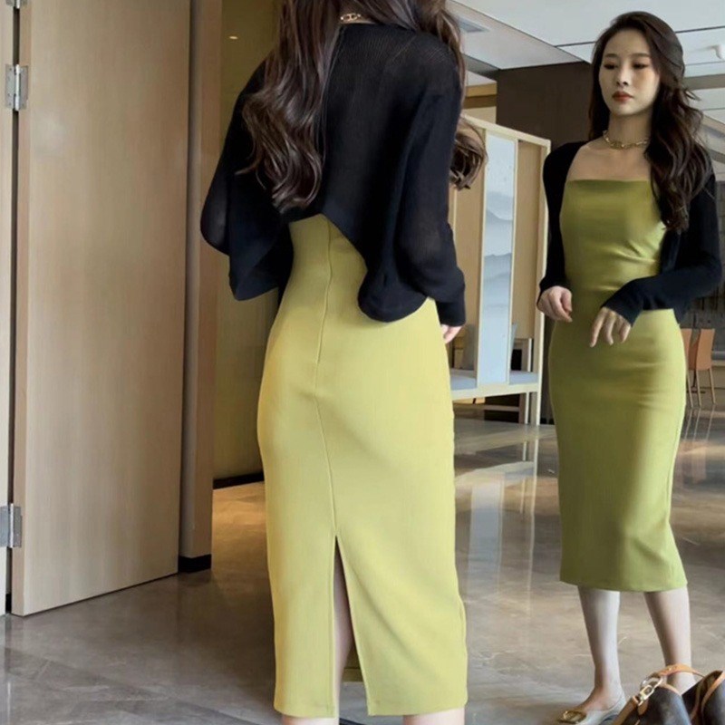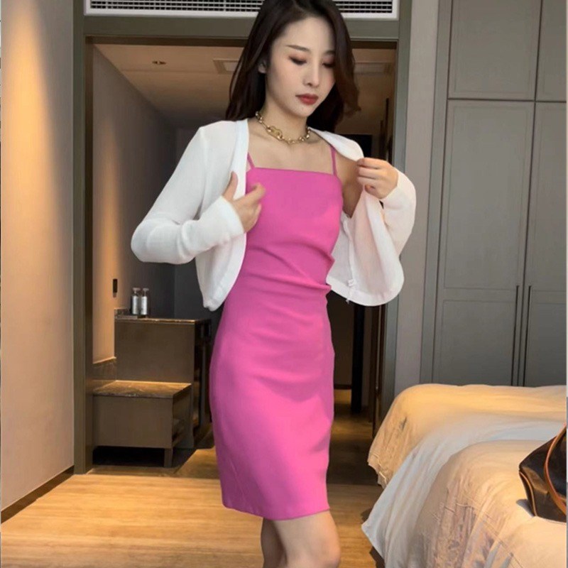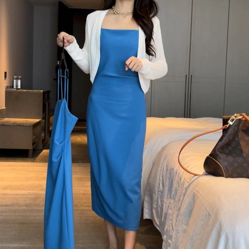 名媛气质包臂连衣裙套装女春季新款欧货性感纯欲开衫吊带裙两件套