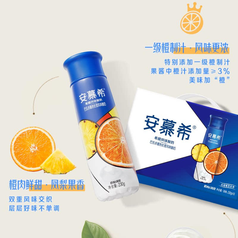 伊利安慕希官方旗舰店希腊风味橙凤梨酸奶整箱酸牛奶230g*10瓶