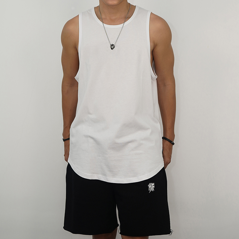 圆弧下摆背心显身材MF跑酷运动潮流宽松纯棉男女健身T恤嘻哈街舞
