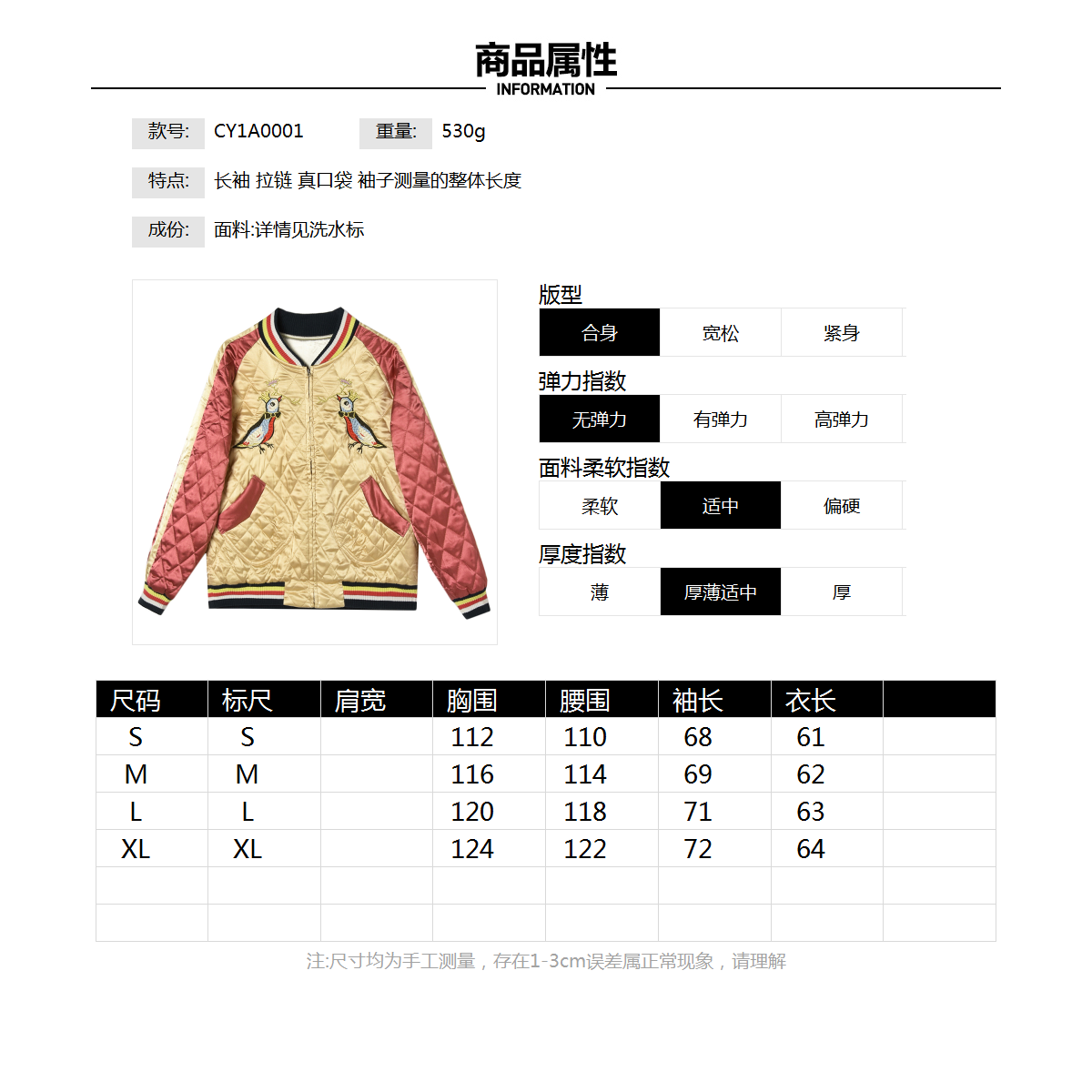 CY1A0001撞色设计光泽感上衣棒球服长袖棉服女10.19冬