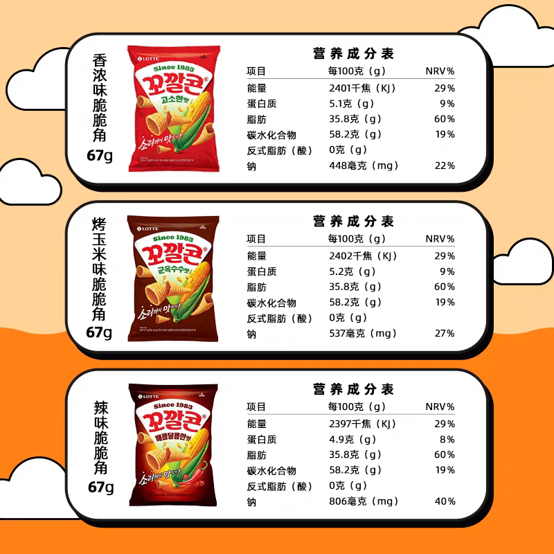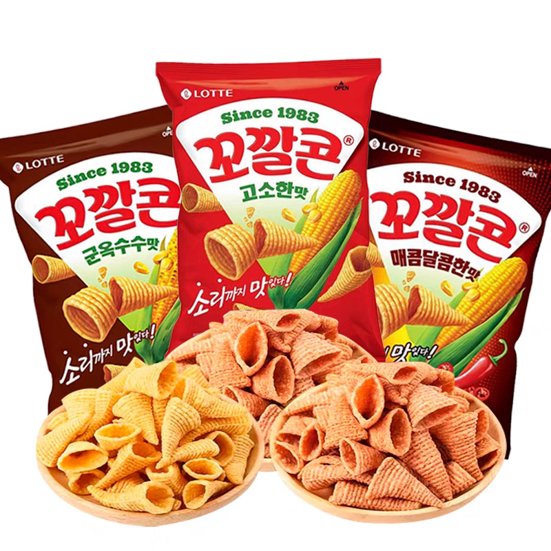 韩国进口Lotte乐天烤玉米味脆脆角尖角脆办公室膨化食品休闲零食