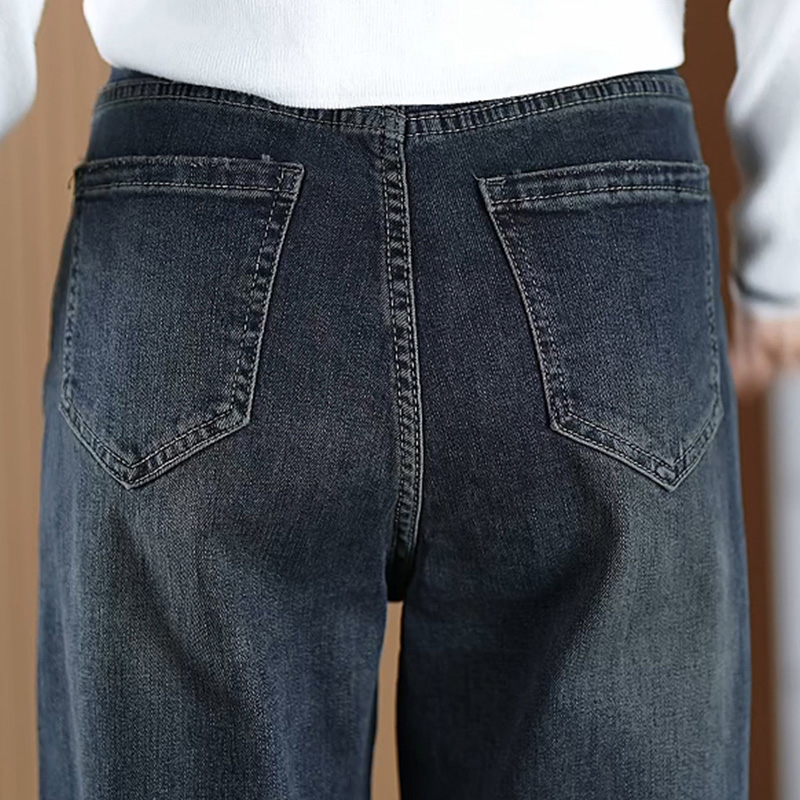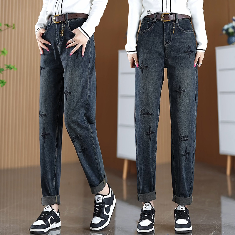 加绒加厚牛仔哈伦裤女秋冬季2025年新款高腰小个子刺绣老爹裤