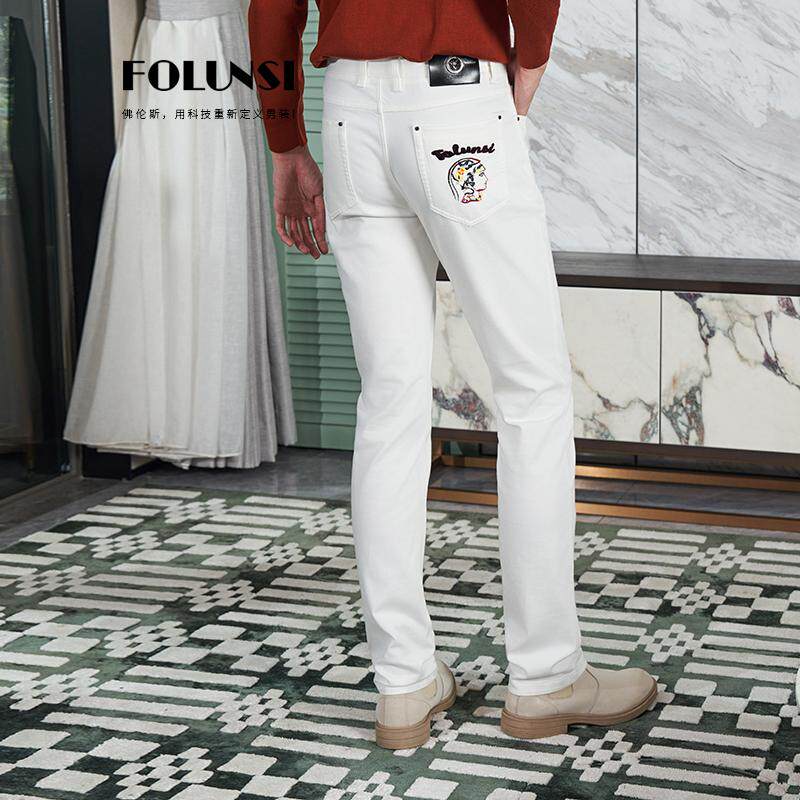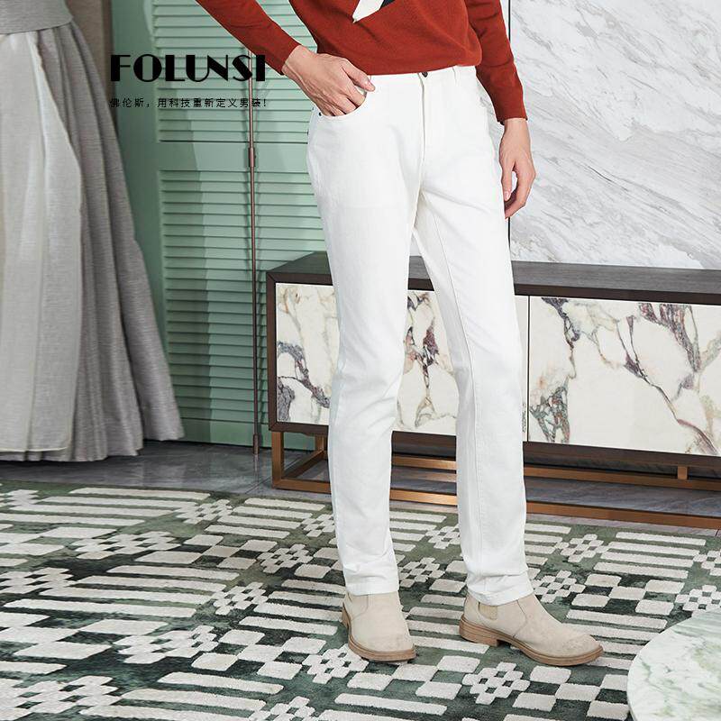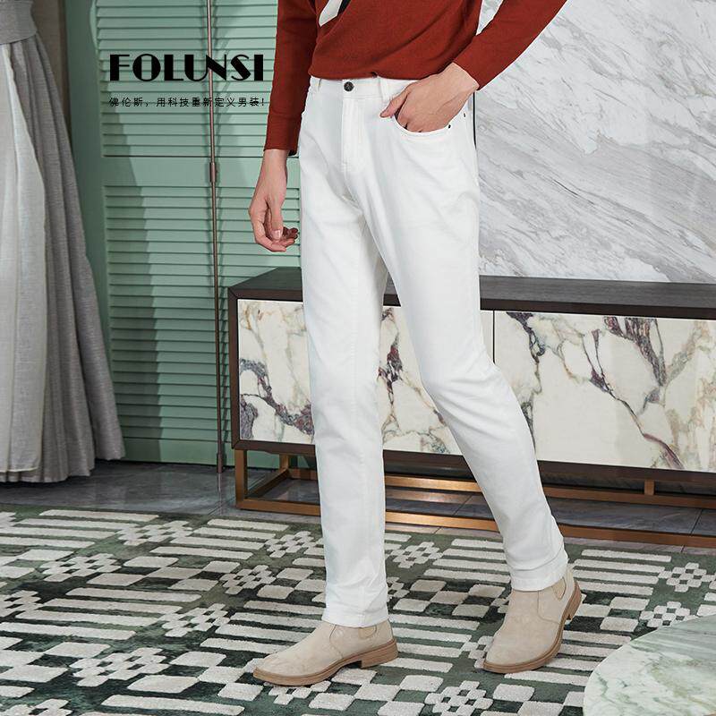 佛伦斯FOLUNSI男装春秋潮流商务休闲裤男直筒裤高端男士长裤白色