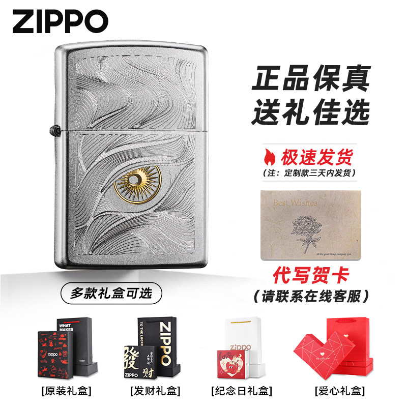 zippo官方正品打火机 秋水含睛原版雕刻防风煤油送男朋友礼物高档