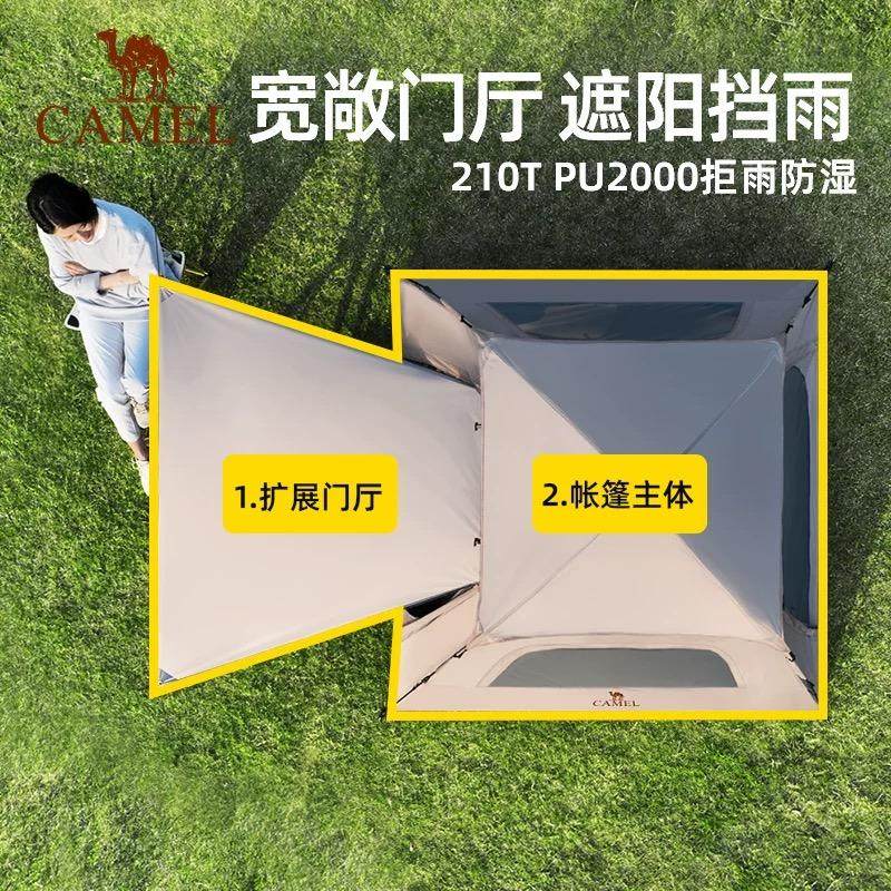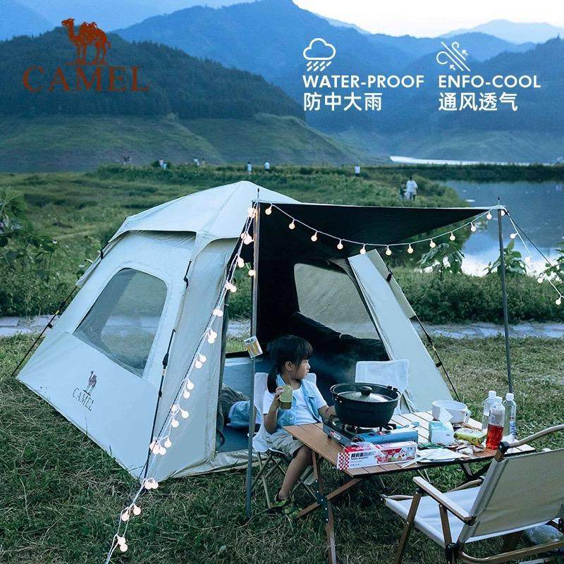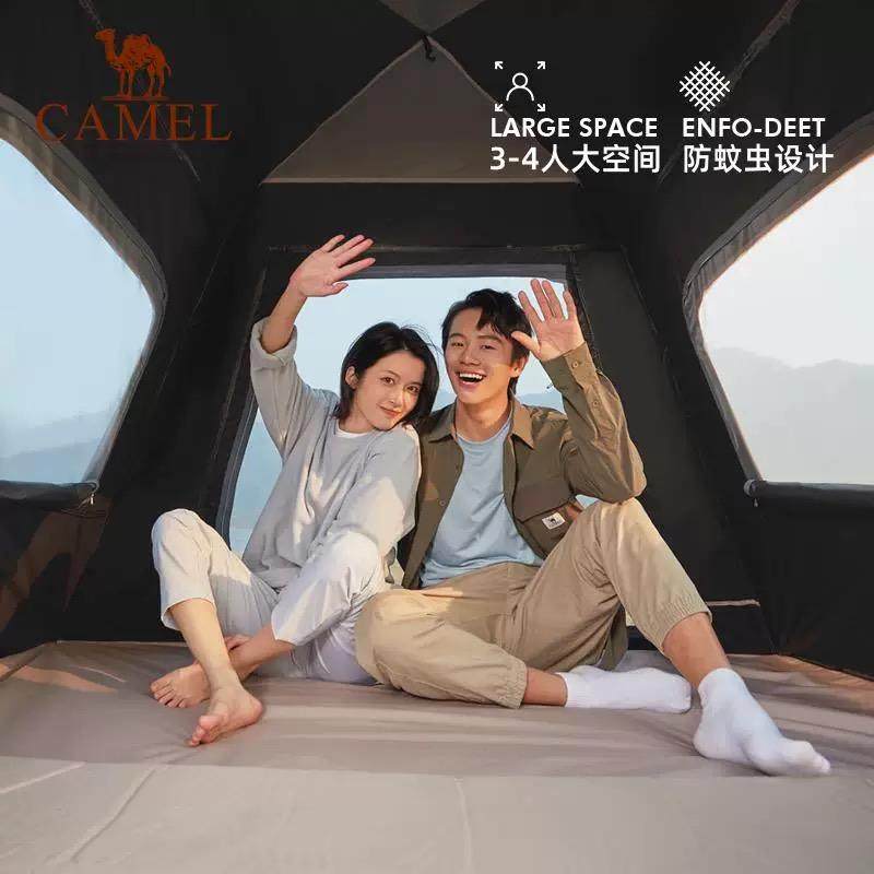 骆驼户外海鸥黑胶自动帐篷户外折叠便携式野营过夜3-4人露营帐篷