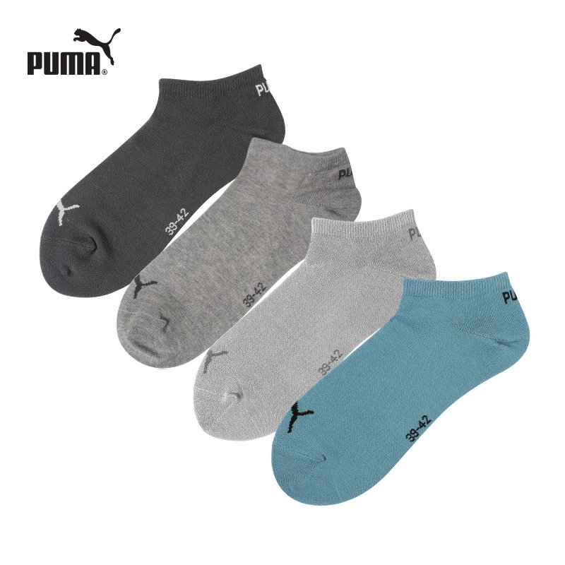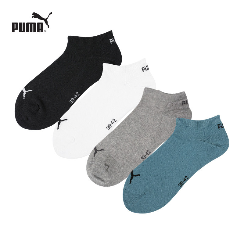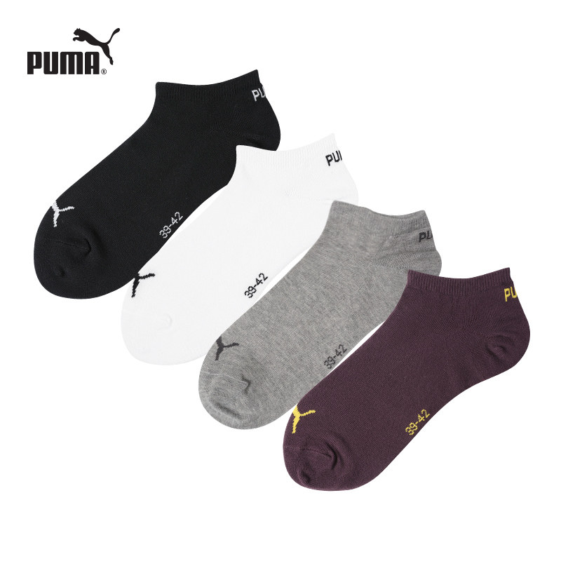 PUMA彪马男女时尚运动休闲吸汗透气浅口隐形不掉跟防滑船袜4双装