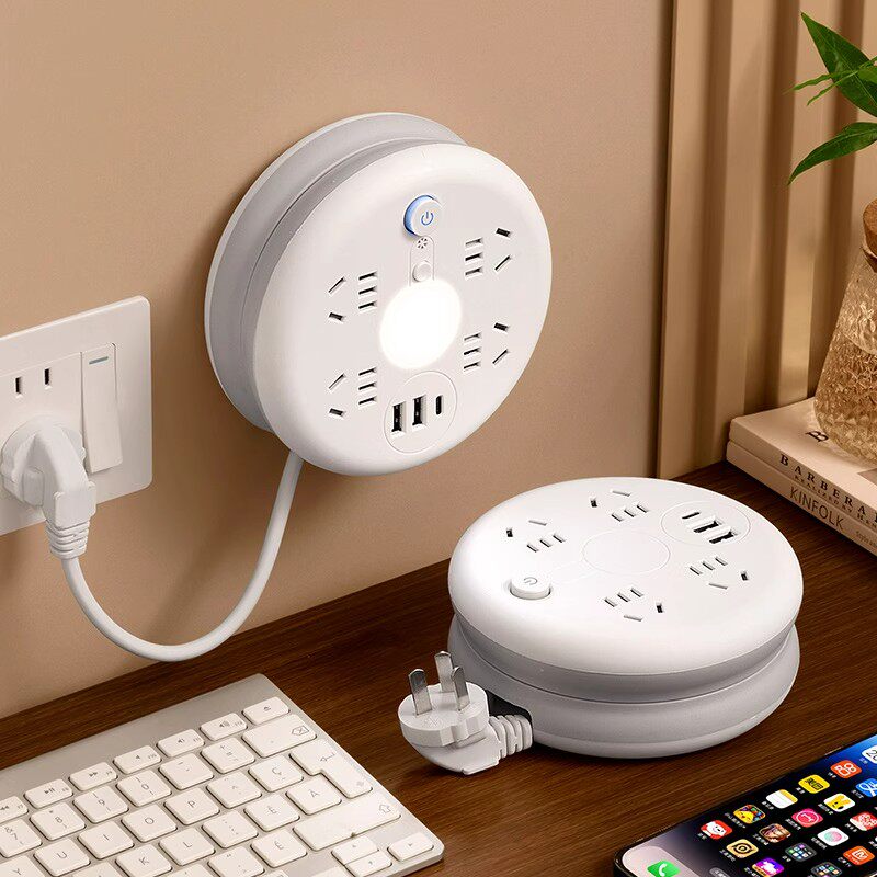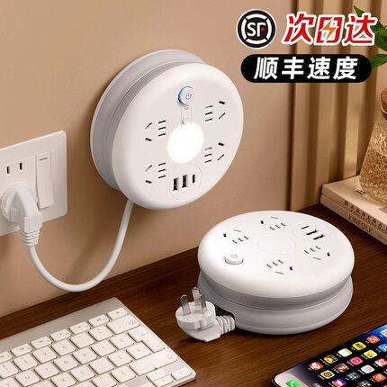 圆形可收纳插座多功能伸缩排插宿舍插线板USB插排家用插电板长线