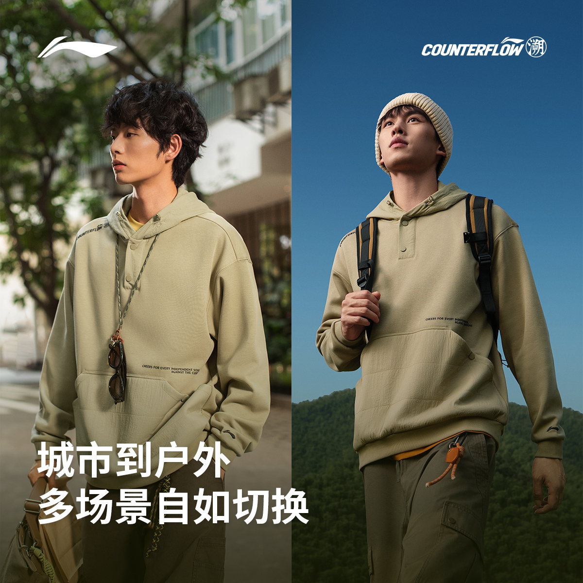李宁户外CF溯丨卫衣男女士秋季新款连帽宽松加绒保暖针织运动服