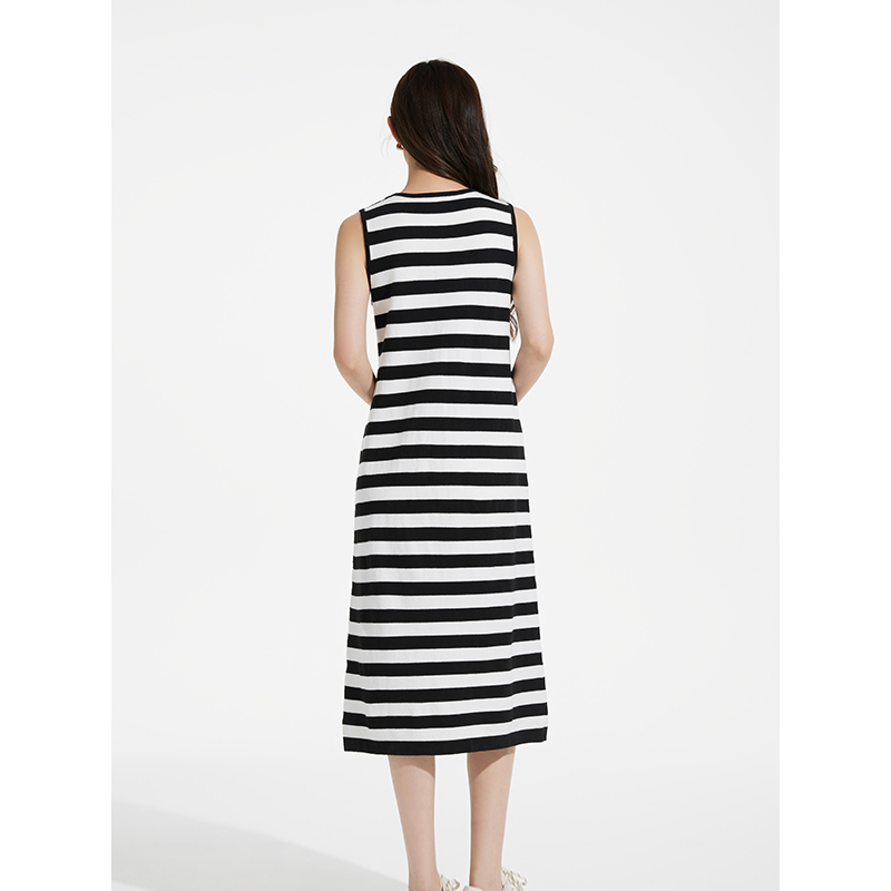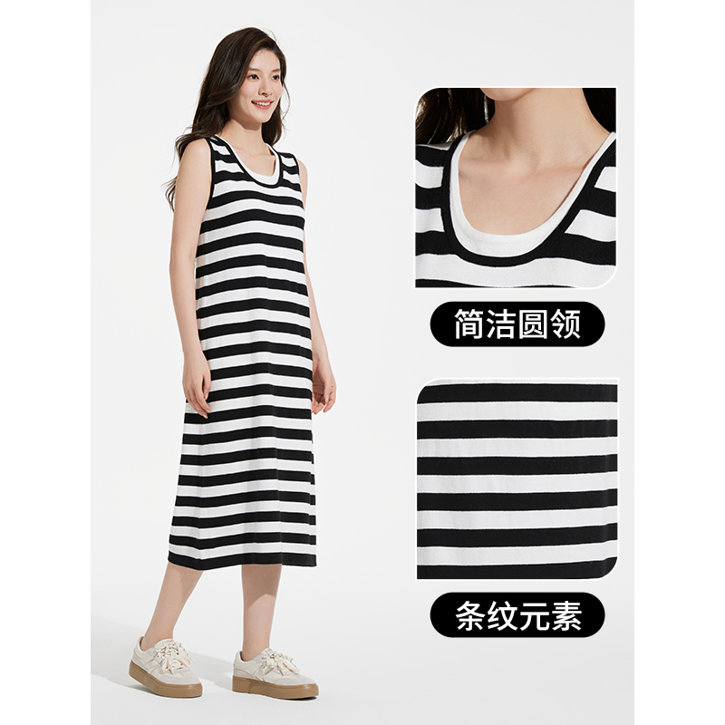 热风背心连衣裙2025年夏季新款女士条纹针织长裙经典内搭打底裙子