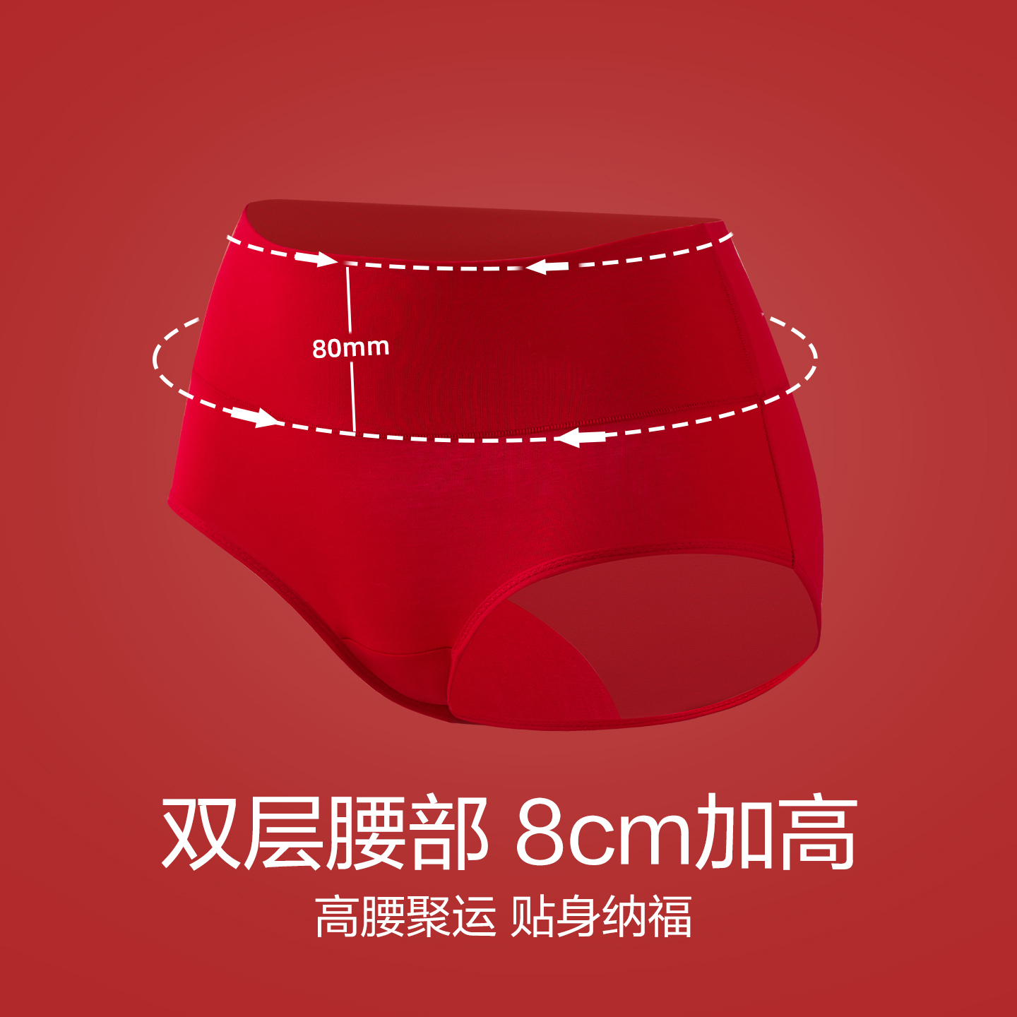 红豆女士红色高腰收腹内裤本命年纯棉裆结婚蛇马年女生三角裤1条