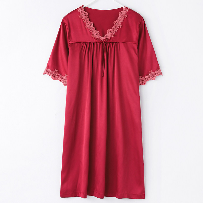 喜芬妮春秋性感冰丝顺滑睡衣丝绸丝质中袖睡裙女夏薄款宽松家居服