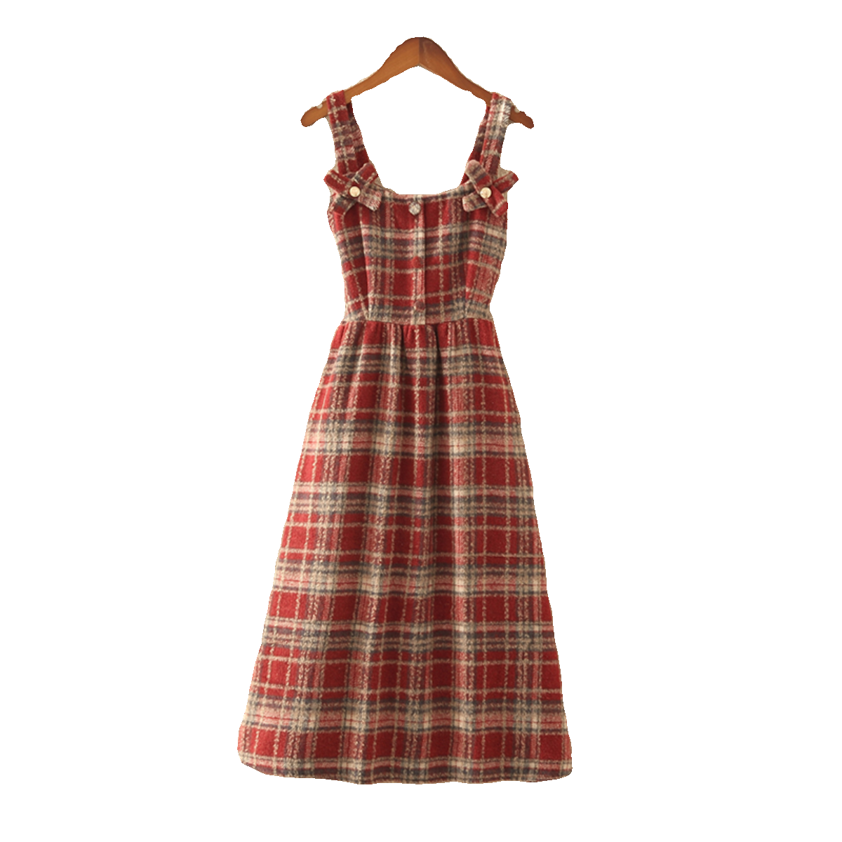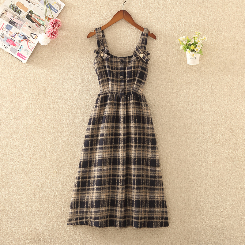 格子吊带连衣裙女春秋季新款韩版收腰显瘦中长款无袖背心a字裙