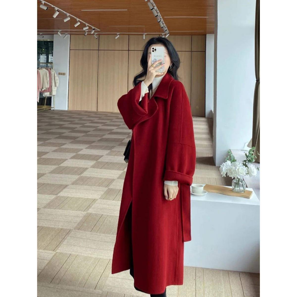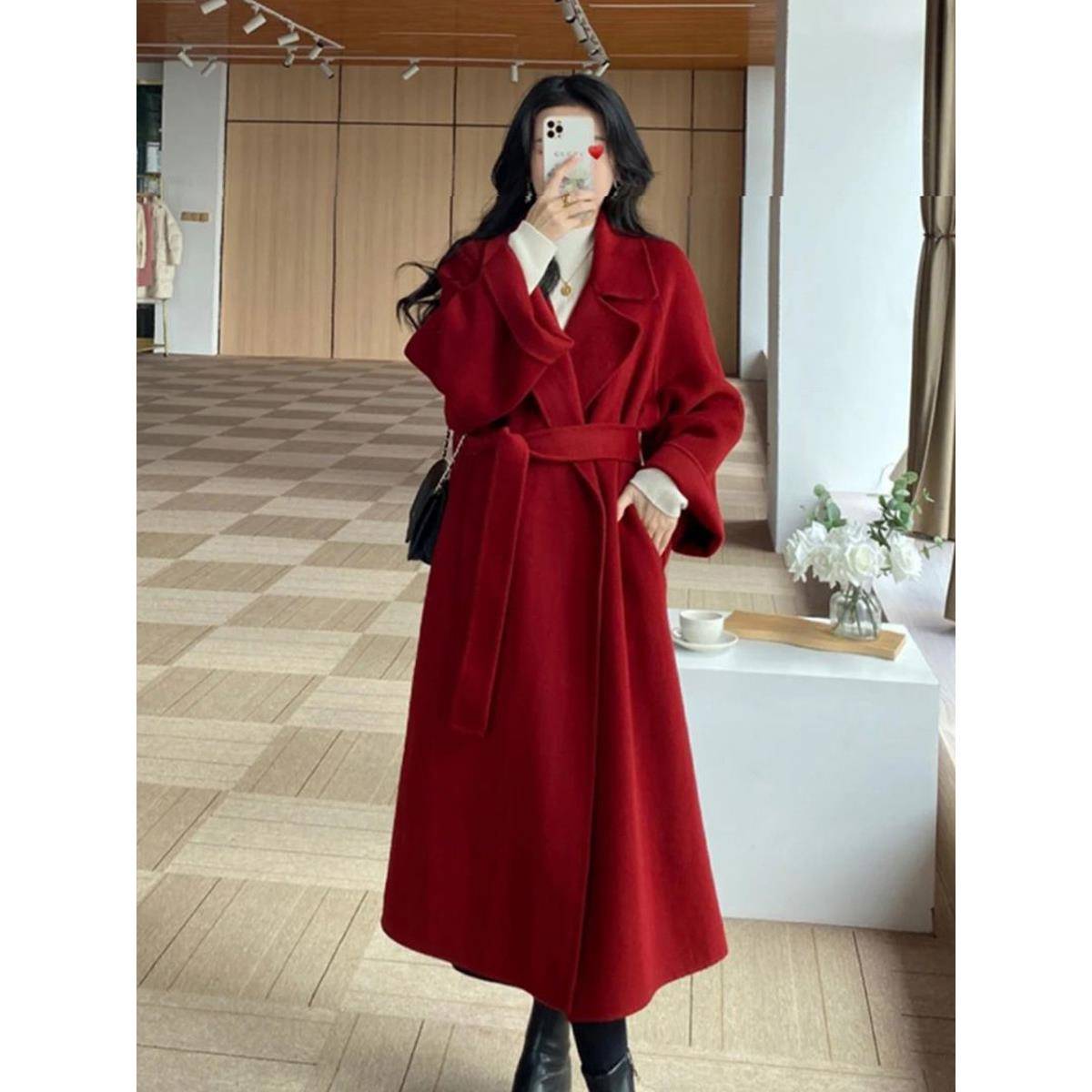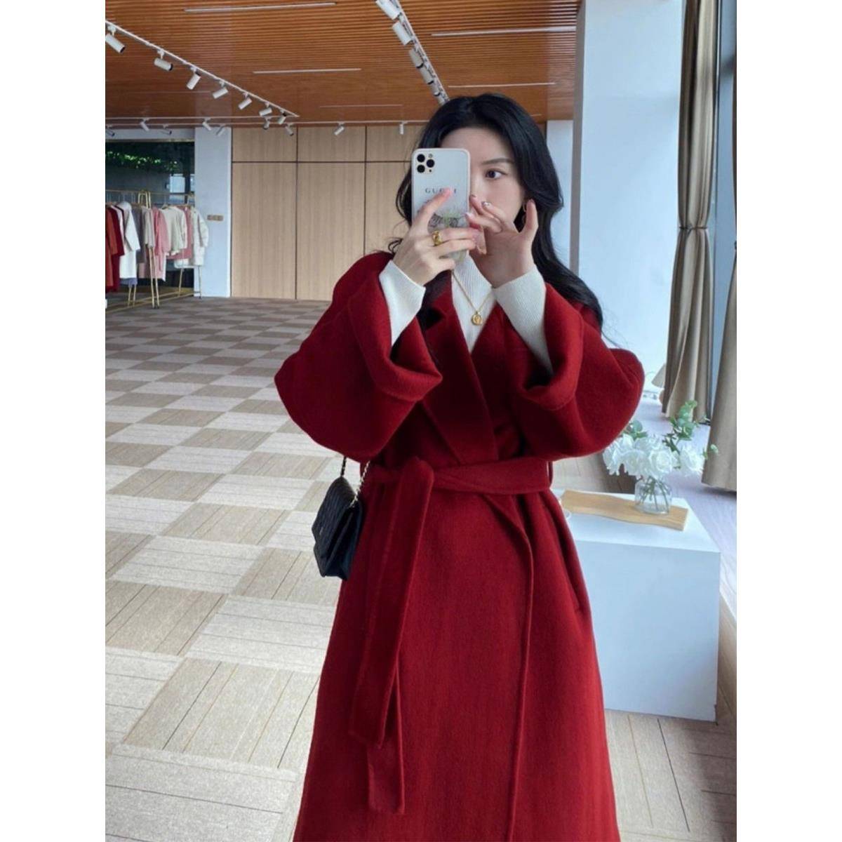 红色过年女装双面羊绒呢子大衣秋冬季2025新款小个子羊毛呢外套女