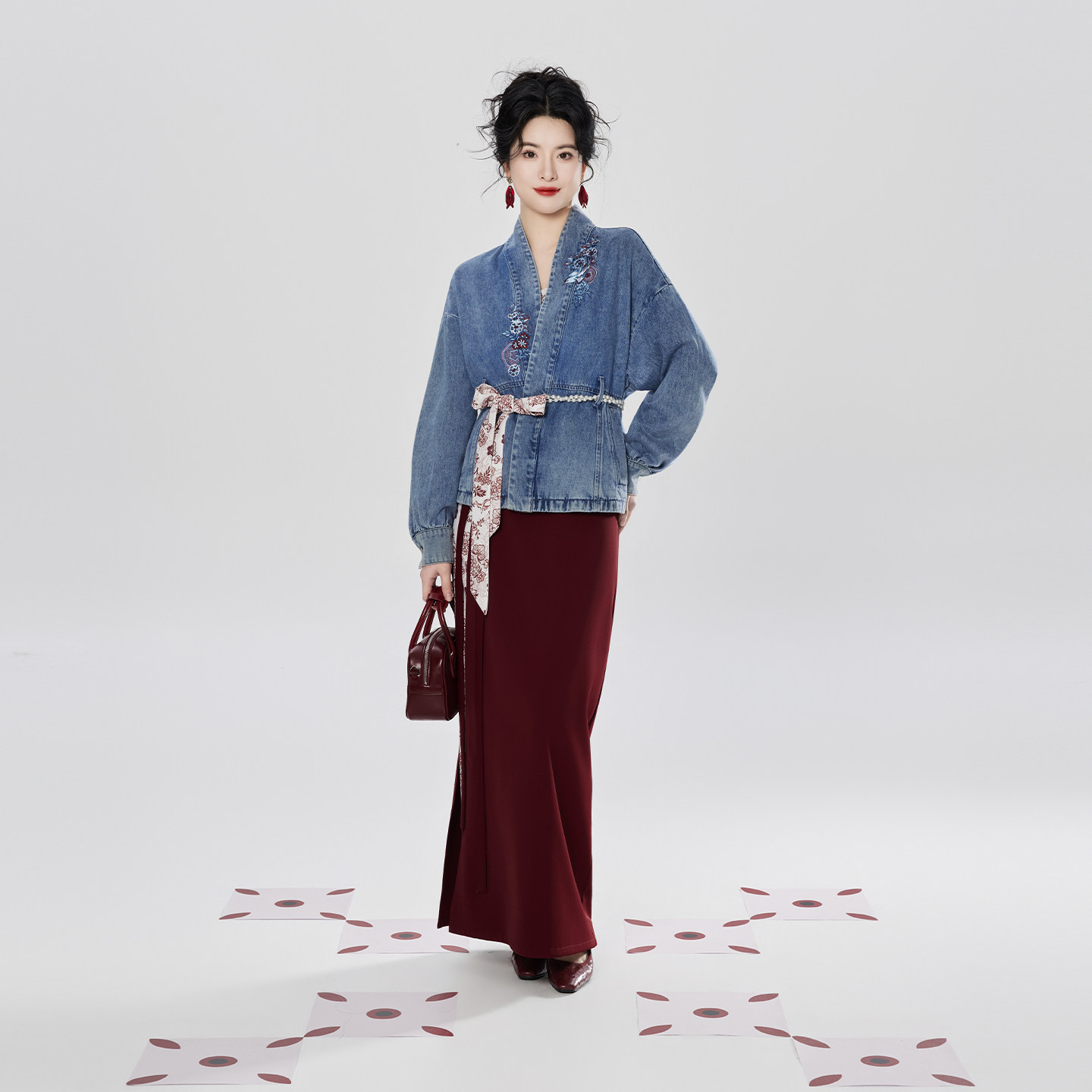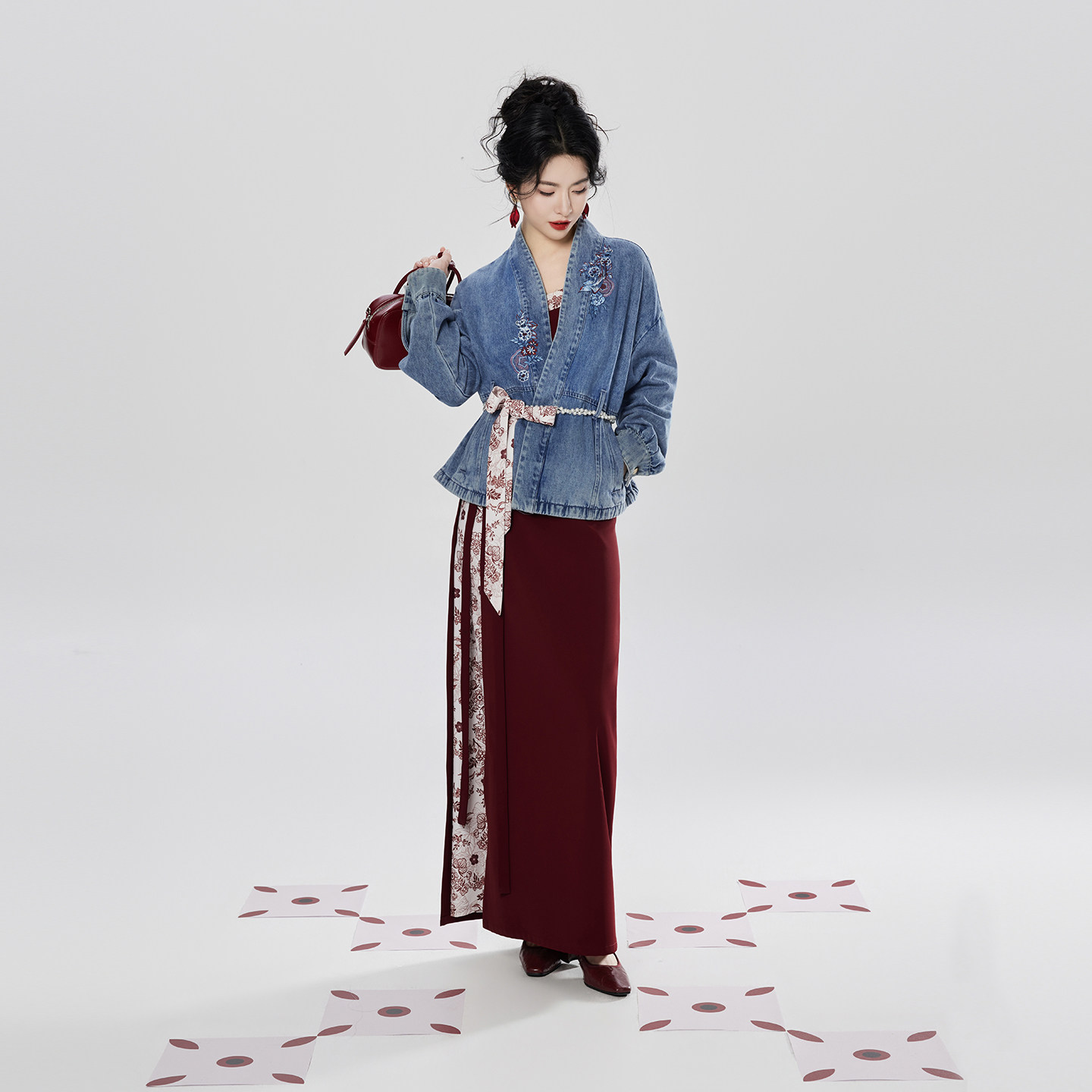 织造司[港风美人]新中式牛仔外套吊带背心女内搭抹胸旋裙汉服套装