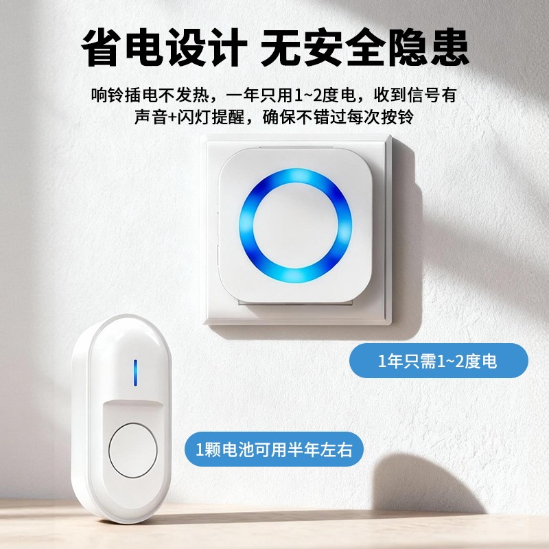 门铃家用无线2025新款超远距离大音量遥控一拖二叮咚提醒玲呼叫器