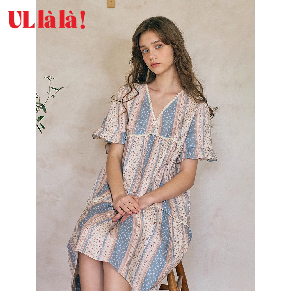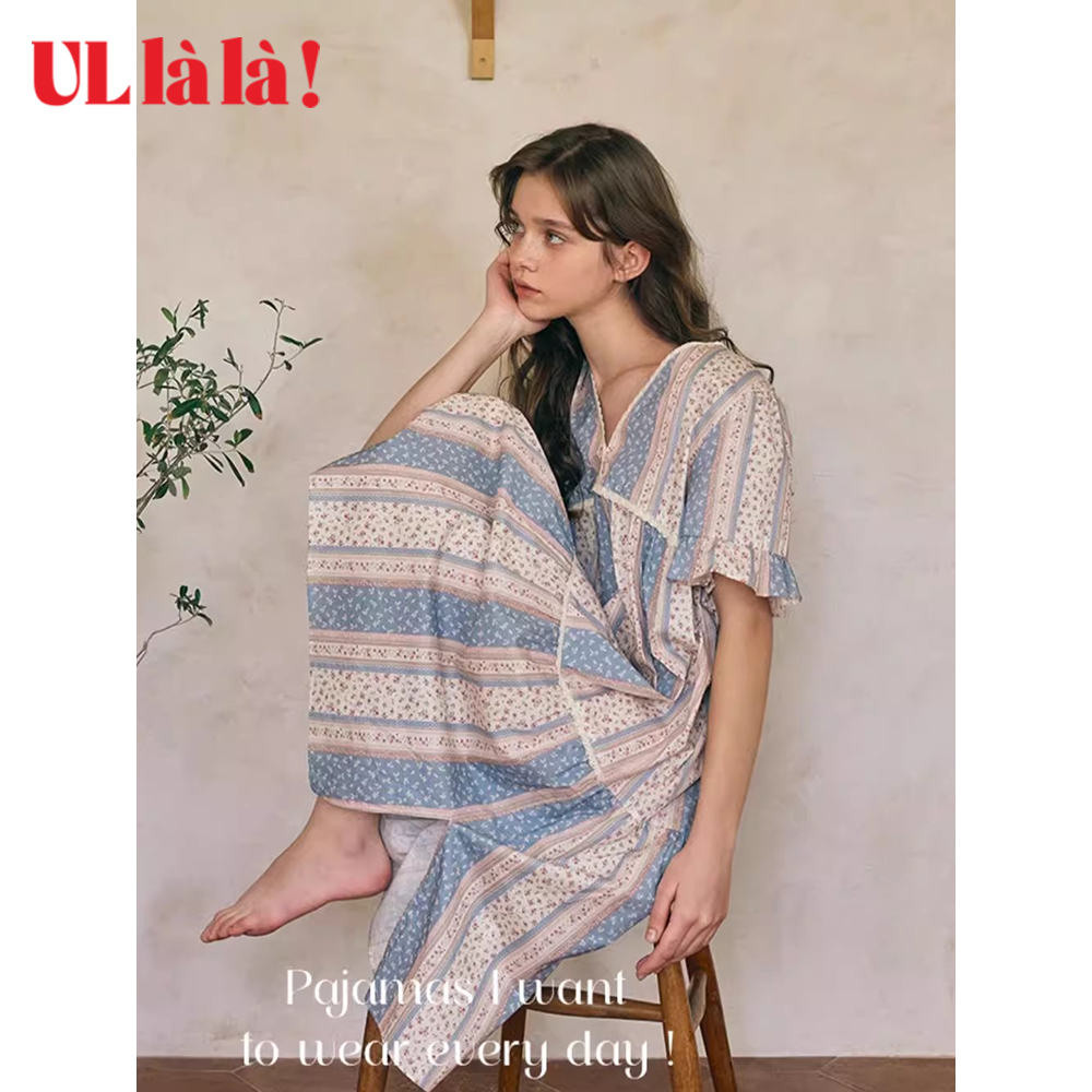 Ullala乌拉拉韩国进口家居服睡衣甜美减龄少女碎花短袖睡裙纯棉夏