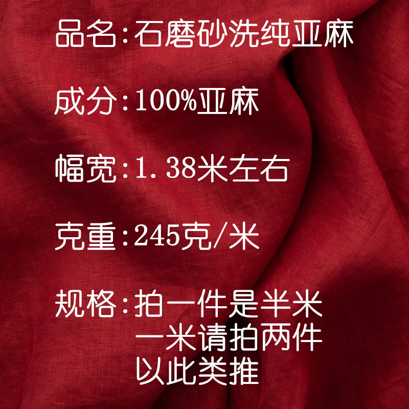 【帕沙诺瓦红】文艺亚麻布料石磨砂洗麻料袍子连衣裙裤子衬衫外套