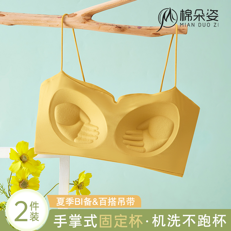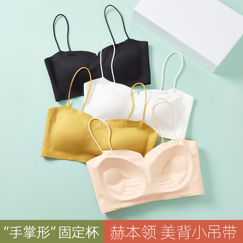 美背内衣女防走光白色细肩吊带背心抹胸裹胸夏季薄款冰丝无痕文胸