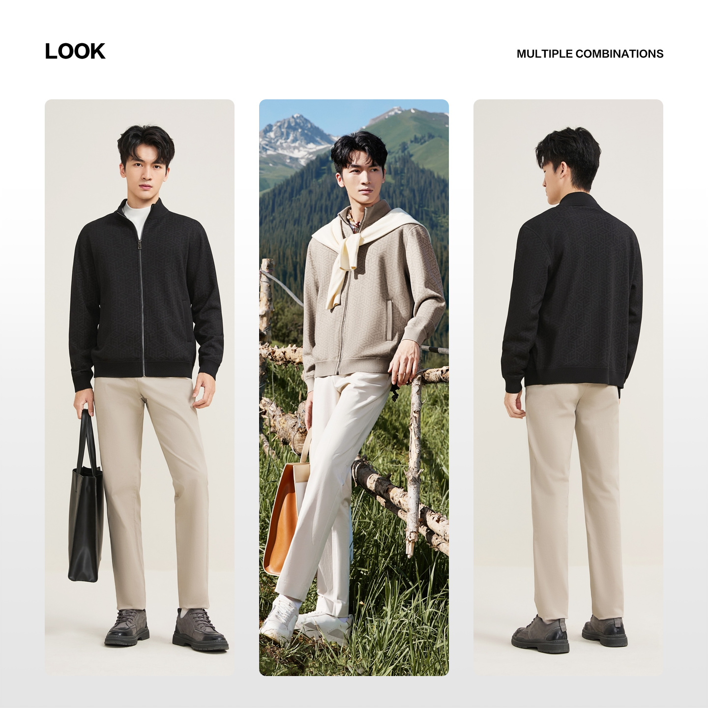 【含羊毛-桑蚕丝面料】2025春季新款针织衫男商务休闲时尚针织衫