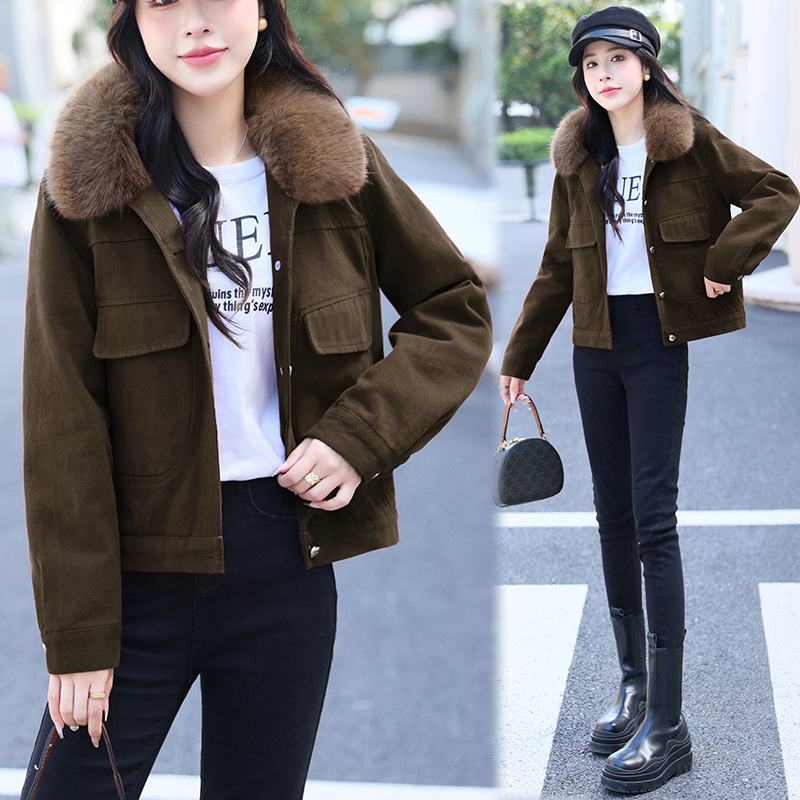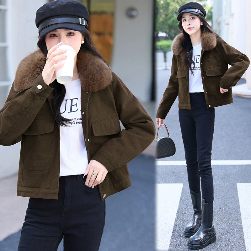 短款加绒加厚外套女秋冬2025新款小个子宽松时尚休闲女士保暖棉衣