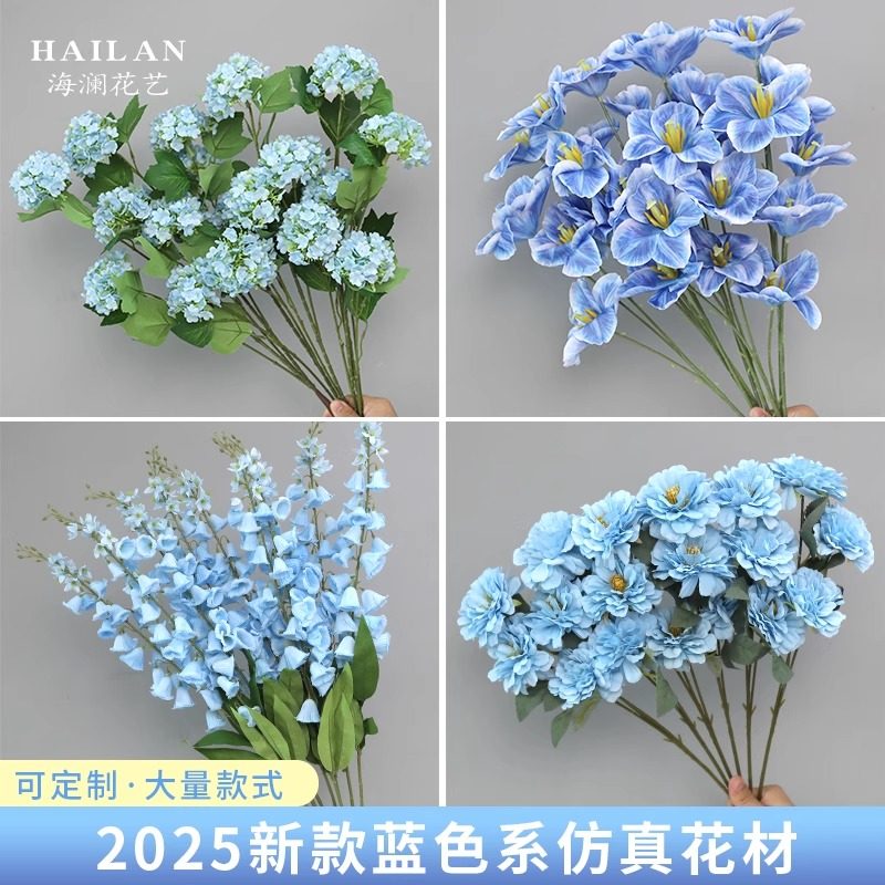 10枝装蓝色仿真花高级感玫瑰婚庆绢花婚礼布置装饰花插花花艺假花