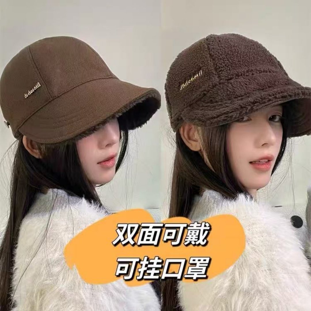 赵露思同款帽子宽檐显脸小鸭舌帽女秋冬双面戴加绒保暖百搭渔夫帽