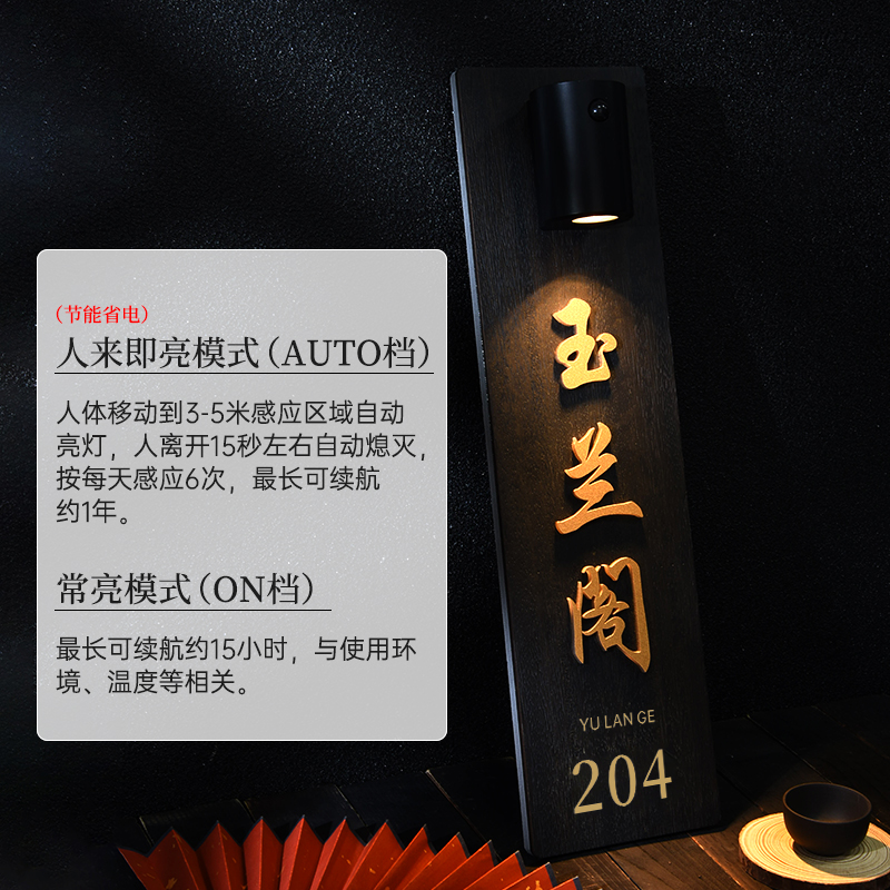 创意充电智能感应灯发光门牌号定制中式led带灯亚克力标识牌酒店饭店民宿房间号码牌足浴茶楼会所ktv包厢牌贴