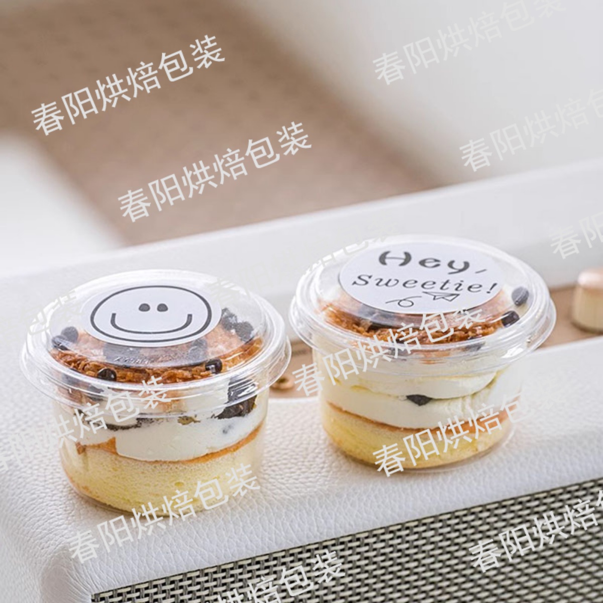 圆形慕斯杯布丁双皮奶烘焙透明一次性吸塑包装盒果冻酸奶甜品杯