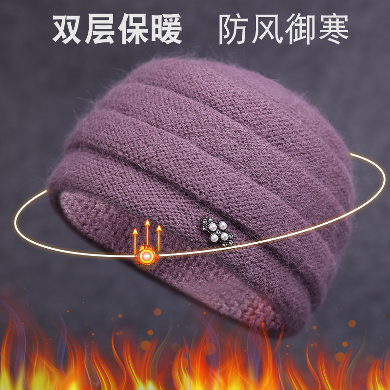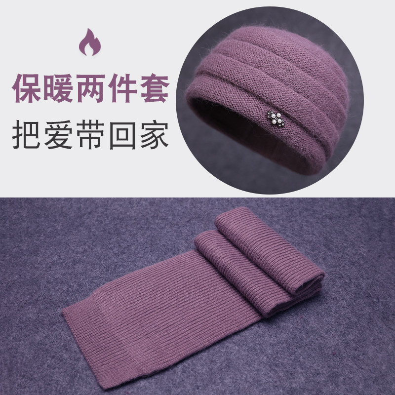 秋冬季中老年人针织帽老人帽子女奶奶冬天保暖老太太妈妈毛线围巾