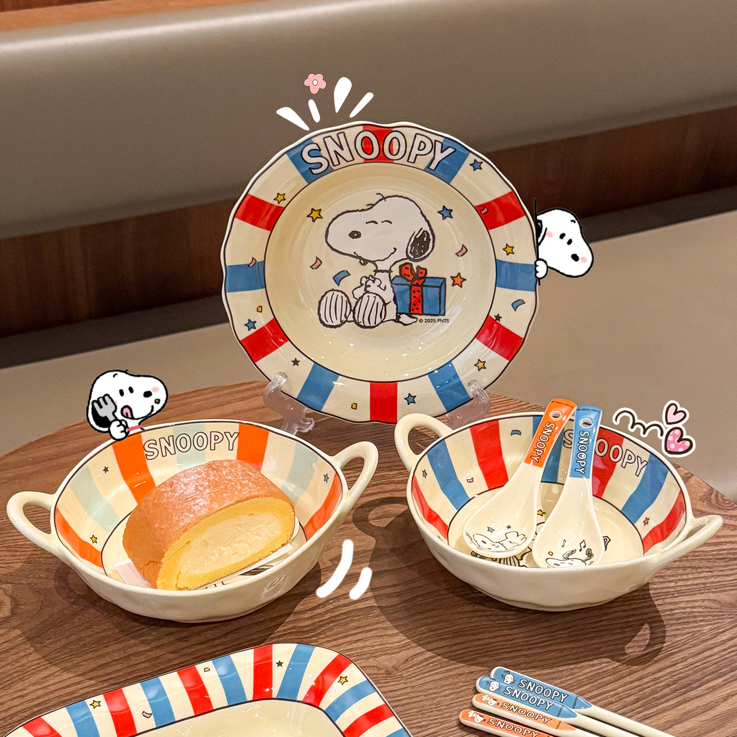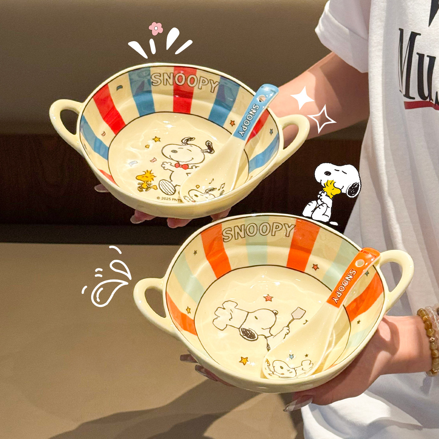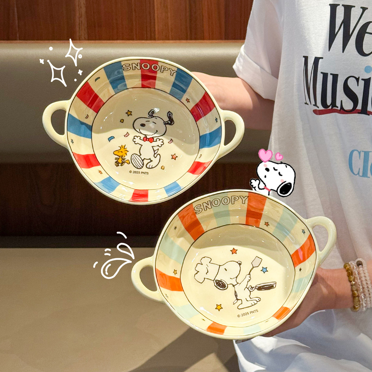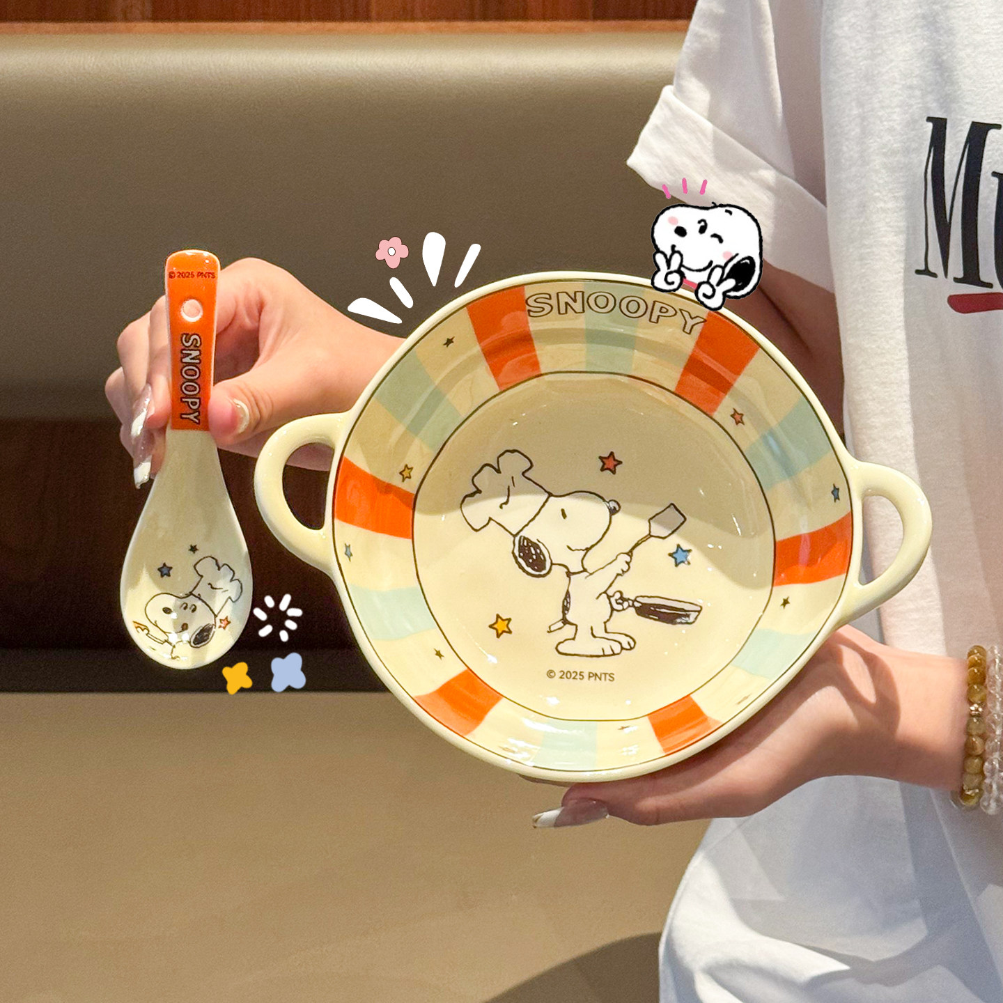 史努比联名陶瓷双耳碗大容量汤面碗家用2025新款高颜值可爱煮面碗