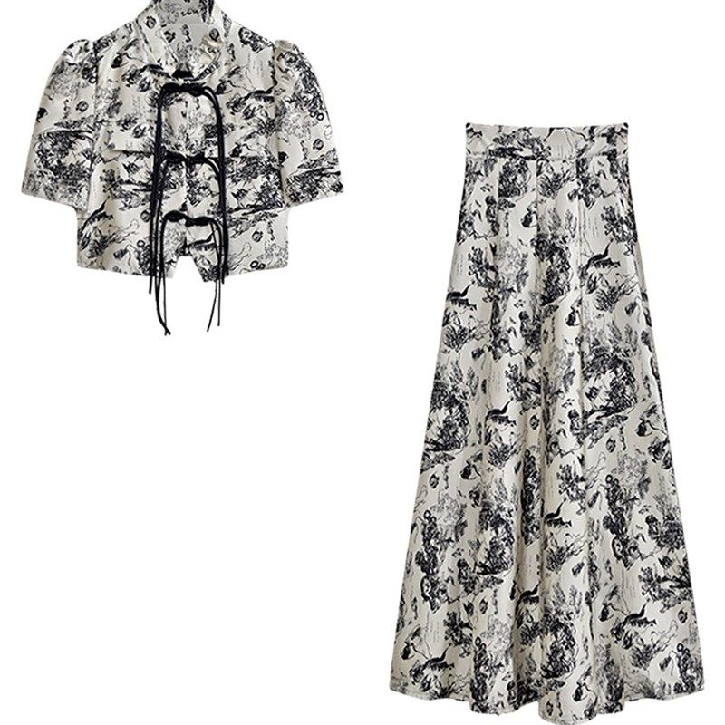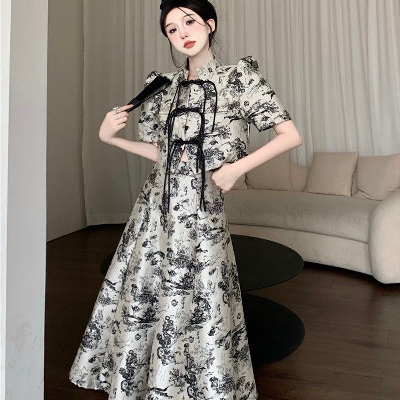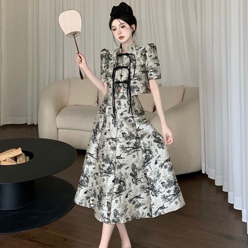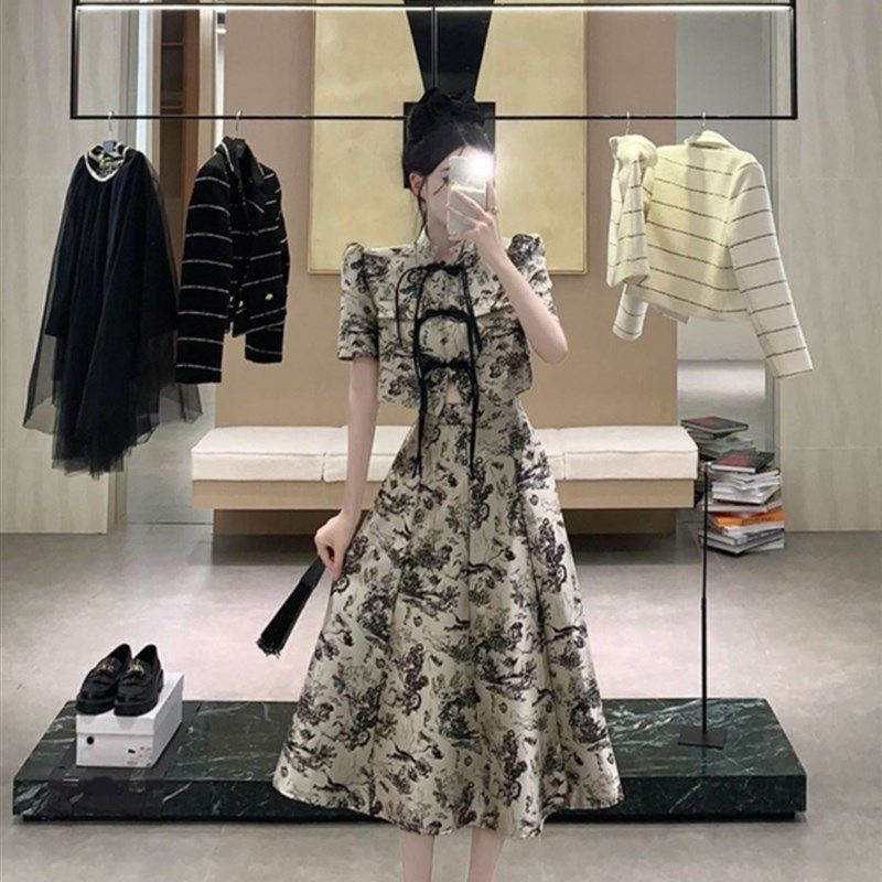 高级感气质国风套装裙女夏季短袖外套高腰显瘦半身长裙可盐两件套