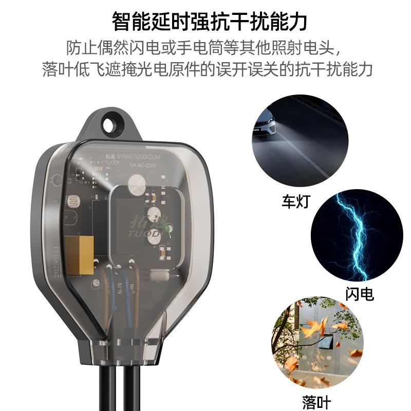 拓迪户外光线感应开关220V开关led灯大功率防雨防尘红外光感开关