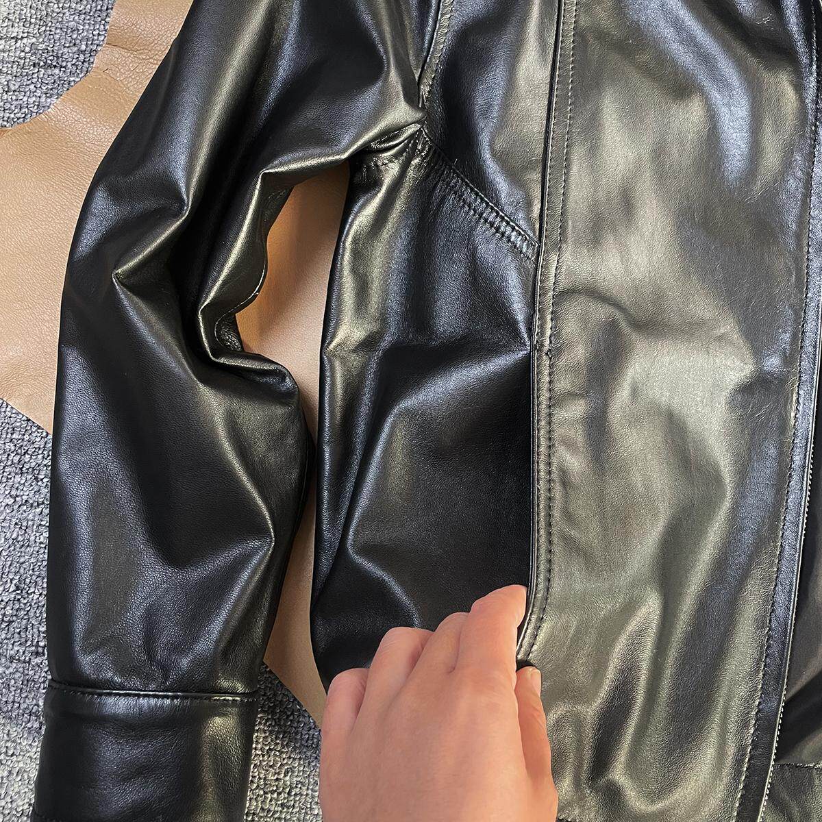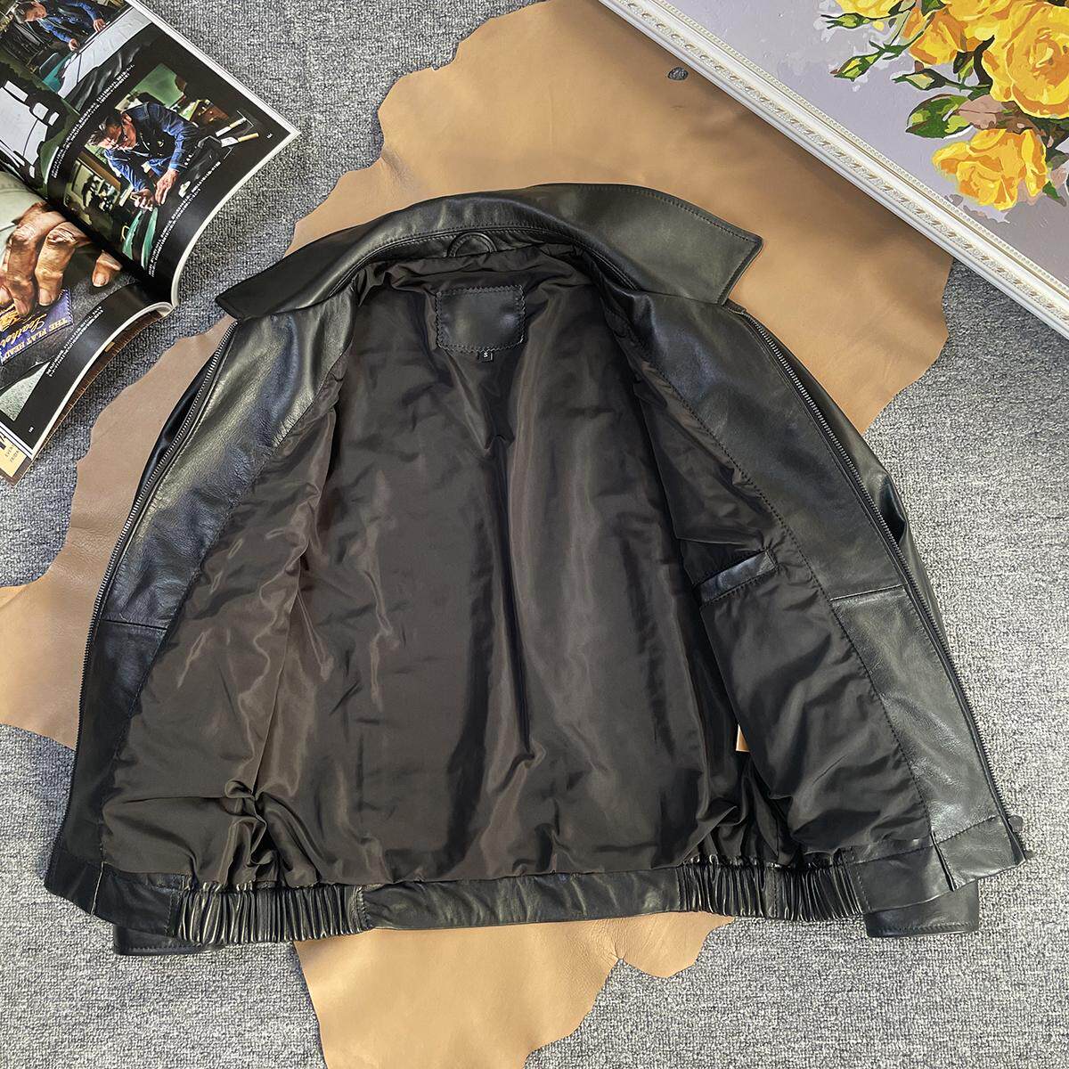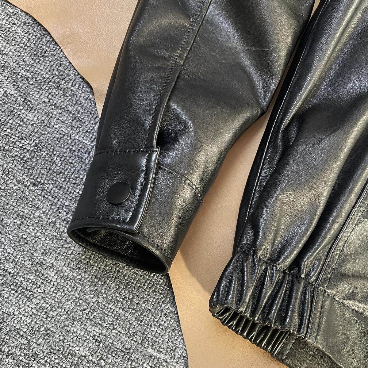 柔软小羊皮港风翻领宽松皮夹克