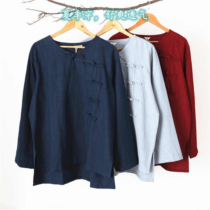 春秋季新款棉麻文艺男装盘扣中式上衣男款苎麻T恤中国风男装禅服