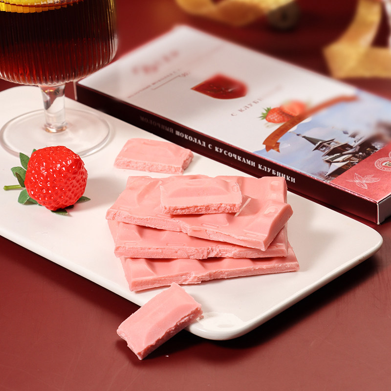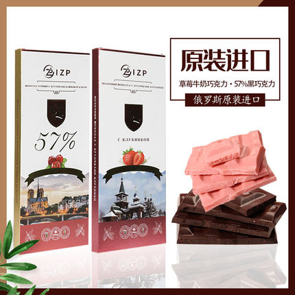 俄罗斯巧克力可可脂进口礼盒装礼物牛奶草莓味57%蔓越莓黑巧克力