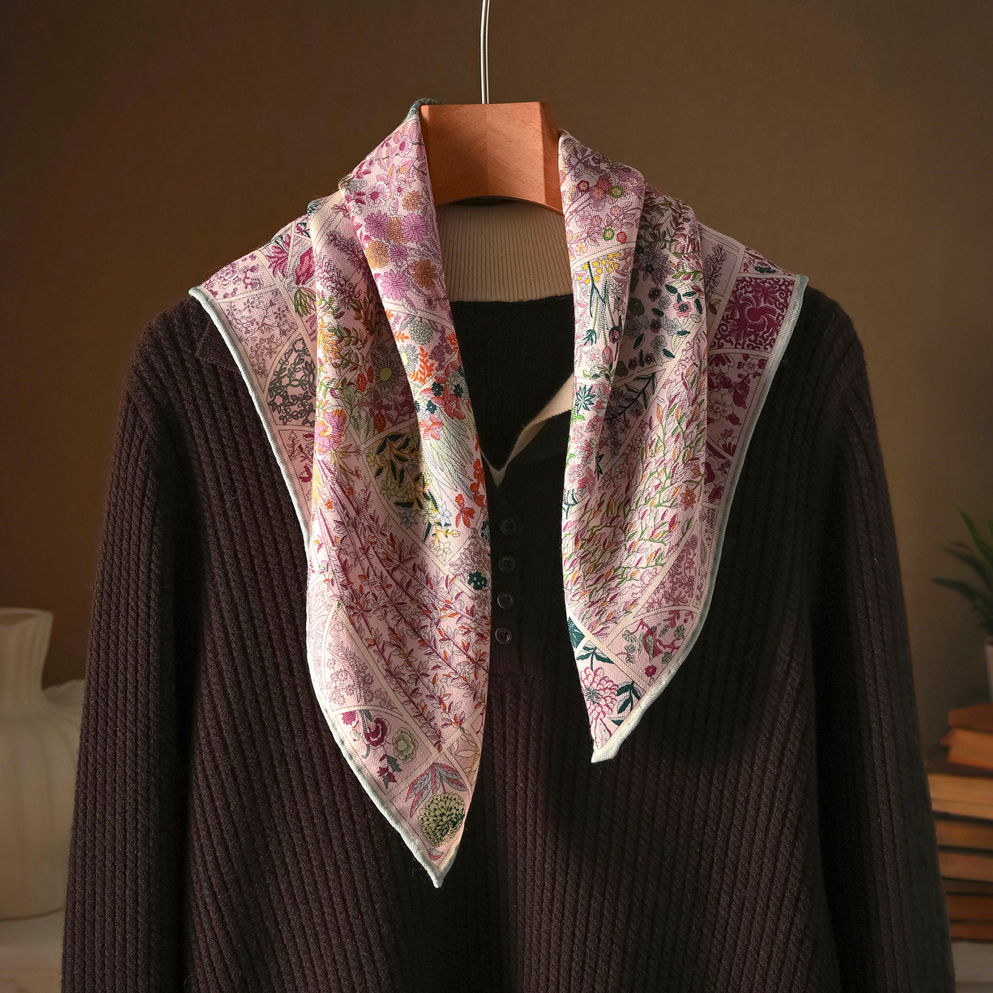 粉色真丝羊毛丝巾小方巾轻奢系脖高级感羊绒围巾薄款女士护颈秋冬