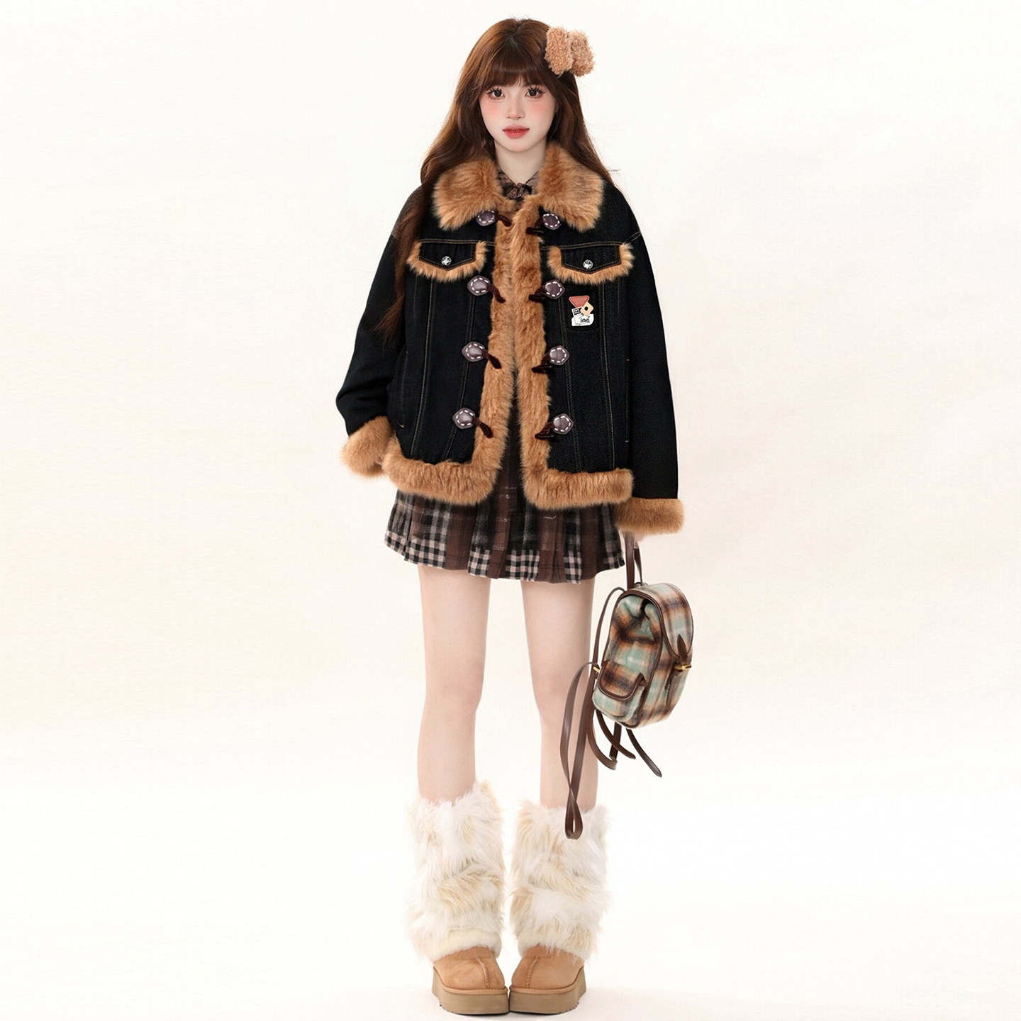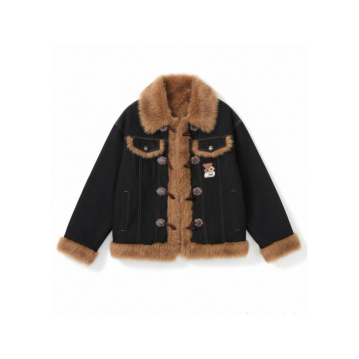 大码女装胖mm黑色加厚毛领棉服女秋冬新款宽松设计感保暖牛仔外套