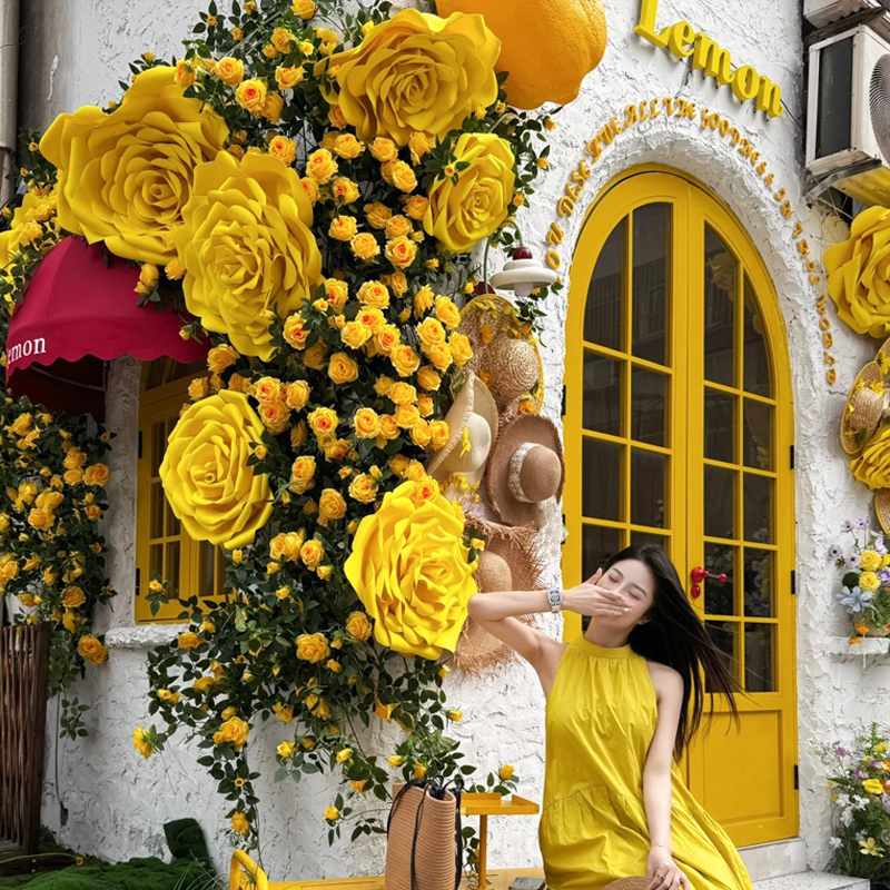 玫瑰花墙装饰室内背景墙网红打卡瀑布花墙仿真花假花墙面造景摆设
