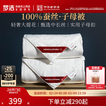 梦洁家纺蚕丝被春秋被被芯被子抗菌空调被二合一子母四季被喜被