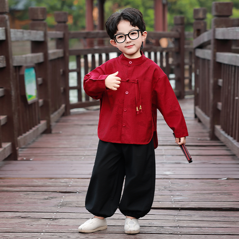 男童新中式唐装套装2025春秋新款儿童复古国风汉服男孩宝宝演出服