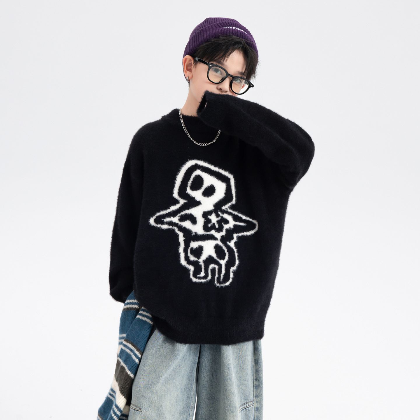 男童半高领水貂绒毛衣2025秋冬新款儿童男孩宽松针织衫大码黄色黑