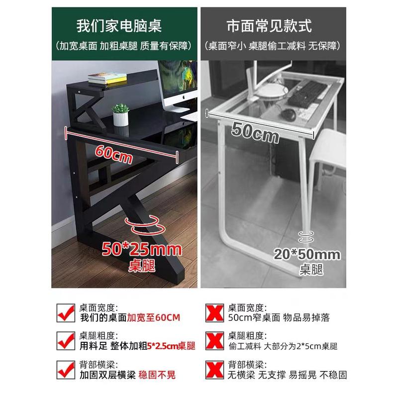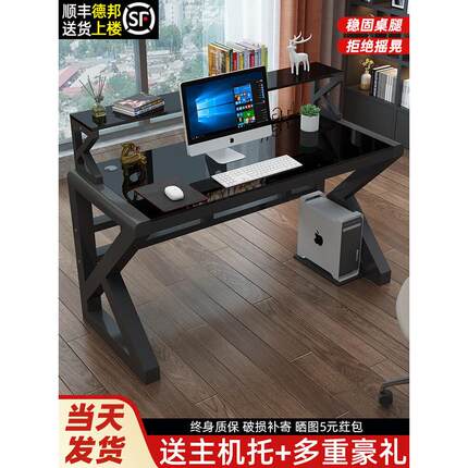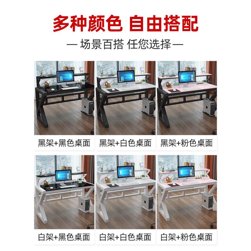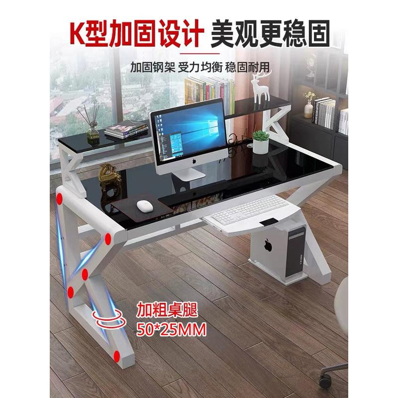 电脑台式桌家用书桌钢化玻璃简易书架卧室办公桌学生学习电竞桌子