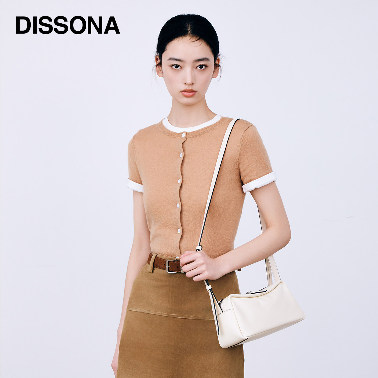 DISSONA迪桑娜吐司包女包 植鞣牛皮波士顿包单肩斜挎包迷你小包包