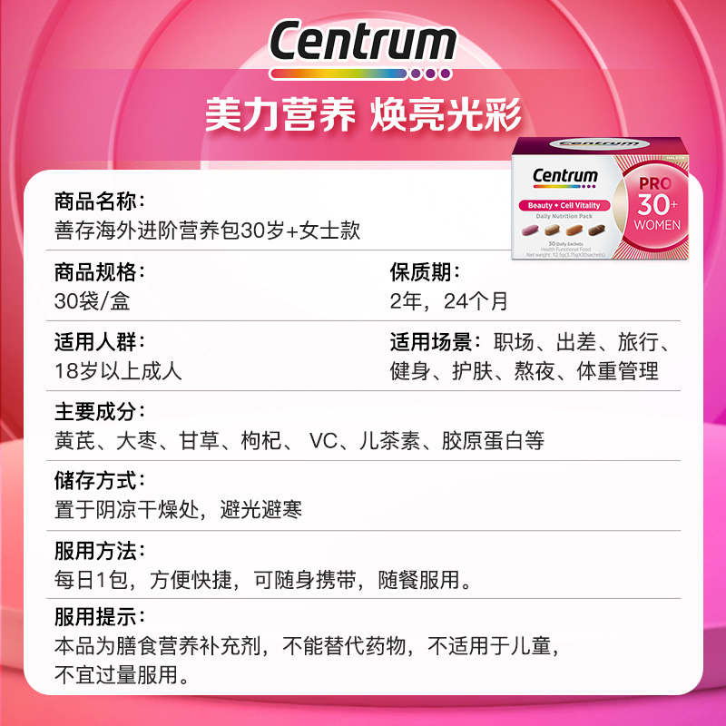 【自营】善存女性30+每日营养包PRO气血调理包黄芪提气血